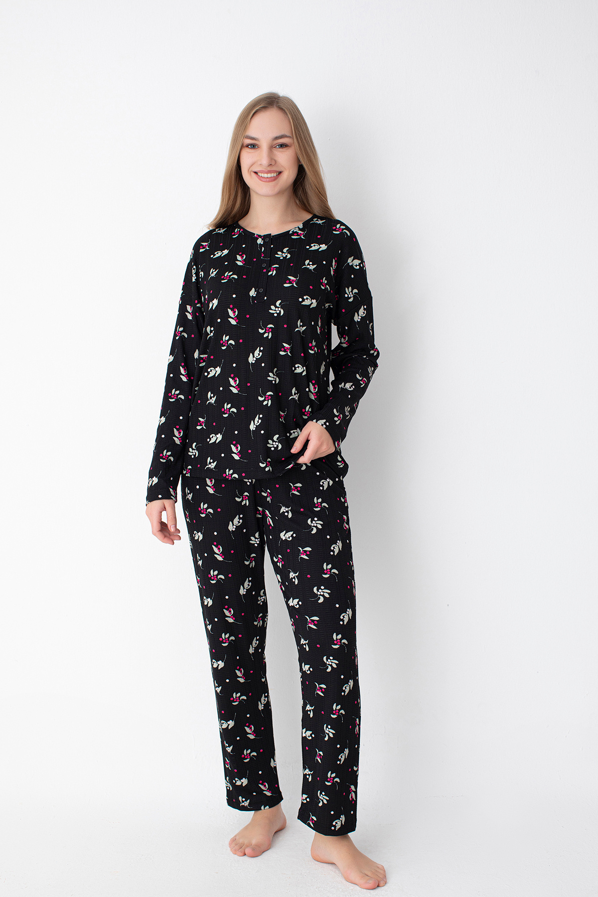 MOR DESENLİ DÜĞMELİ YAKA UZUN KOL LİKRA PENYE PİJAMA TAKIMI MOR DESENLİ DÜĞMELİ YAKA UZUN KOL LİKRA PENYE PİJAMA TAKIMI 23Y1S10382 2XL