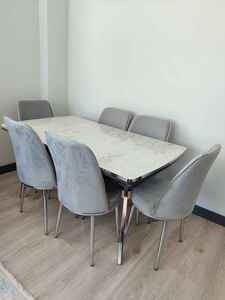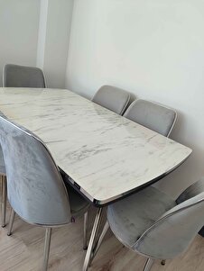 Masayı alırken burada hiç yorum olmaması beni çok üzdü. En çokta bu yüzden bu yorumu yapma ihtiyacı duydum. Masa bana 10 gün gibi bir sürede ulaştı. Kargoya verilince satıcı tarafında bilgilendirme yapıldı. Öncelikle masanın bir köşesinde ufak bi soyulma var olmasa iyiydi ama ağır bir ürün olduğu için değişimle uğraşmak istemedim. Masa gerçekten spor ve şık duruyor. Yüzeyi parlak görünüyor. Bizim için çok kullanışlı oldu. Masa tek taraftan açılıyor ve 2 metre uzunluğunda olduğu için çok rahat bir şekilde kalabalık misafir ağırlanabilecek. Sandalyeler ise görünümü çok şık ama kullanımı için aynı şeyi söyleyemiyorum. Oturumu dar geldi bize daha geniş yapılabilirdi, oturunca sanki öne doğru kayıyoruz gibi oluyor, ama yemek süresince idare edilebilir. Genel olarak görünümü çok beğendik, ihtiyacı olanlara tavsiye ederim. 1 yıldızı sandalyeden kırdım. Sandalyelerde biraz daha geniş olursa 10 numara 5 yıldız diyelim. O halde bizde güle güle kullanıp, hayrını görelim inşallah.