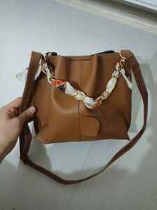 Kadın Taba Fularlı Zincir Aksesuarlı Yumuşak Deri 3 Bölmeli El Kol Ve Omuz Çantası Kadın Taba Fularlı Zincir Aksesuarlı Yumuşak Deri 3 Bölmeli El Kol Ve Omuz Çantası FULAR1 تک سایز