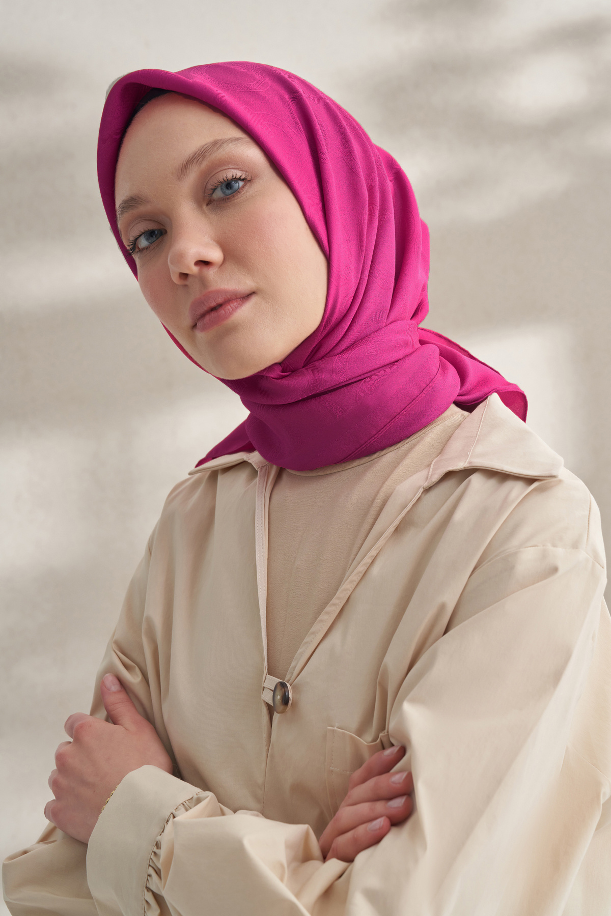 Jakarlı Monogram Eşarp, Piramit Monogram, Desenli Fuşya Eşarp 01009 Jakarlı Monogram Eşarp, Piramit Monogram, Desenli Fuşya Eşarp 01009 SHES01009 90x90