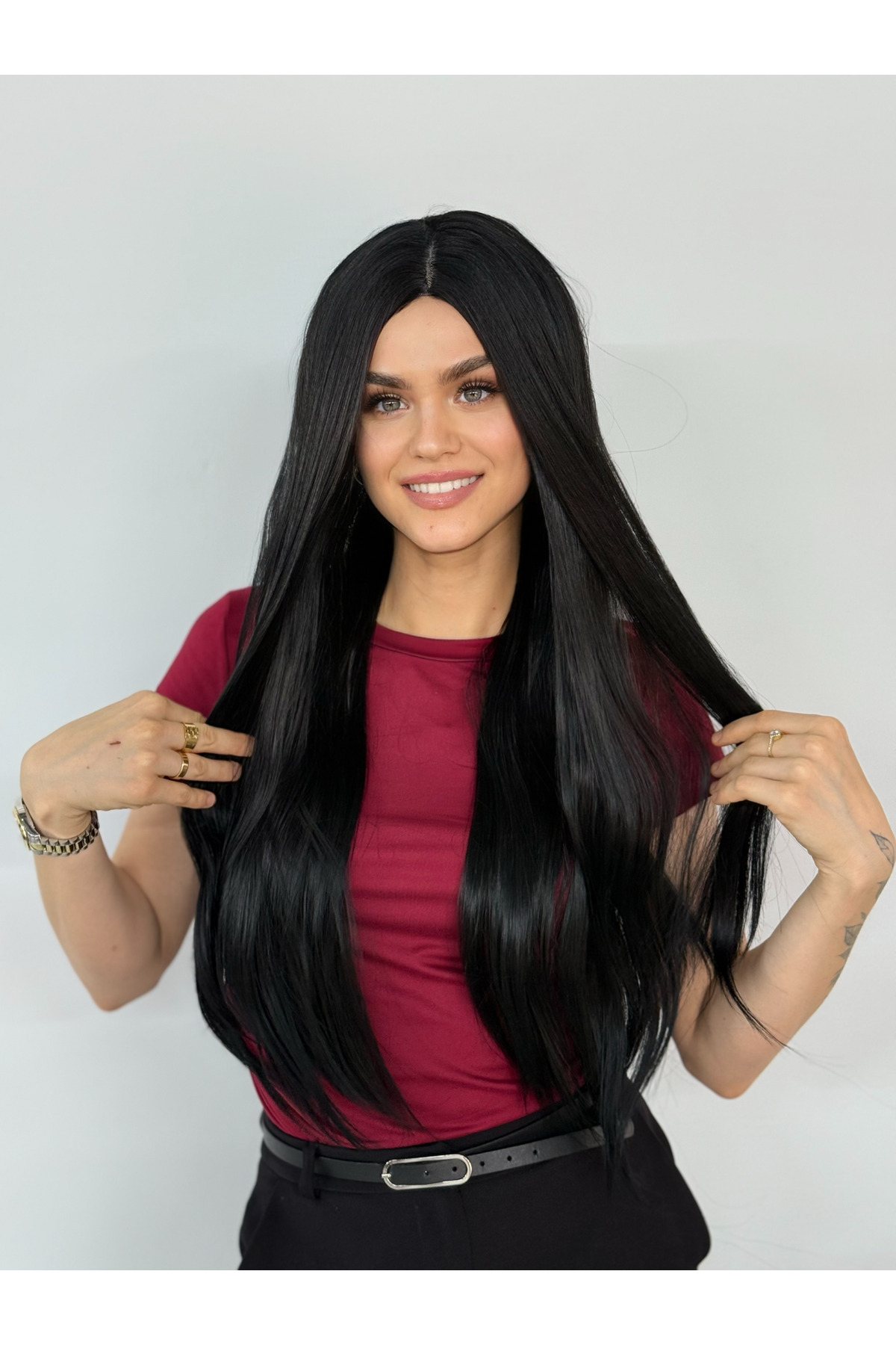 Düz uzun Perçemsiz Cilt görünümlü Medikal özel peruk Siyah Düz uzun Perçemsiz Cilt görünümlü Medikal özel peruk Siyah Qmedikal9016s1 تک سایز