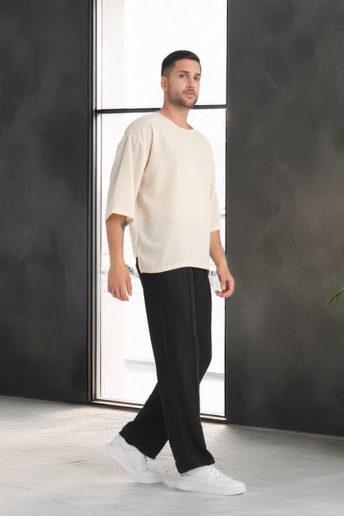 Bisiklet Yaka Fakir Kol Oversize Kısa Kol T-shirt - Bej Bisiklet Yaka Fakir Kol Oversize Kısa Kol T-shirt - Bej TS100030 XL