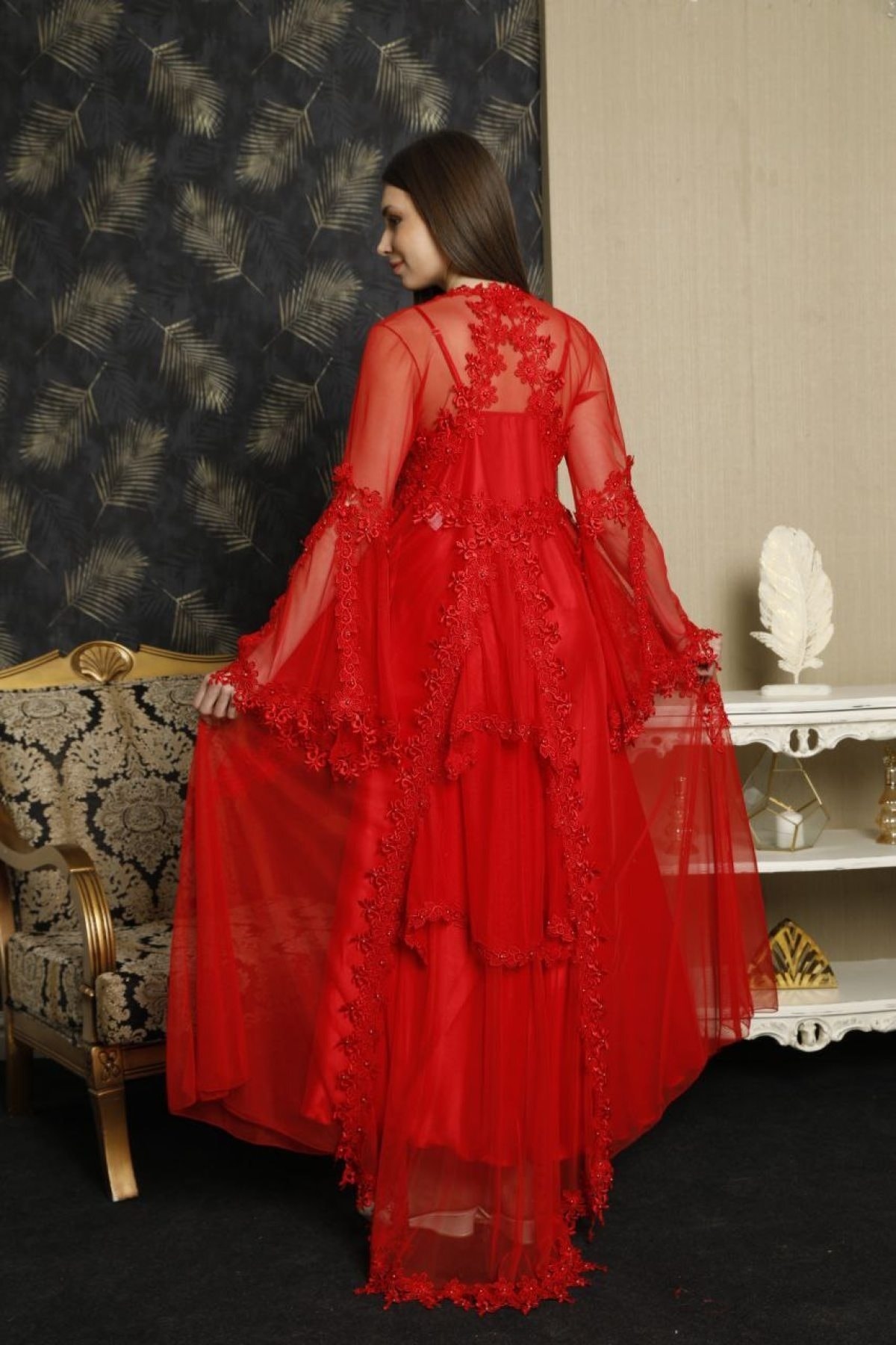 Boyun Askılı Derin Yırtmaçlı Kırmızı Tül Transparan Dantel Kadın S/m-l/xl Beden Şık Sabahlık Boyun Askılı Derin Yırtmaçlı Kırmızı Tül Transparan Dantel Kadın S/m-l/xl Beden Şık Sabahlık cooqpoo-izabel-3lutunik L/XL