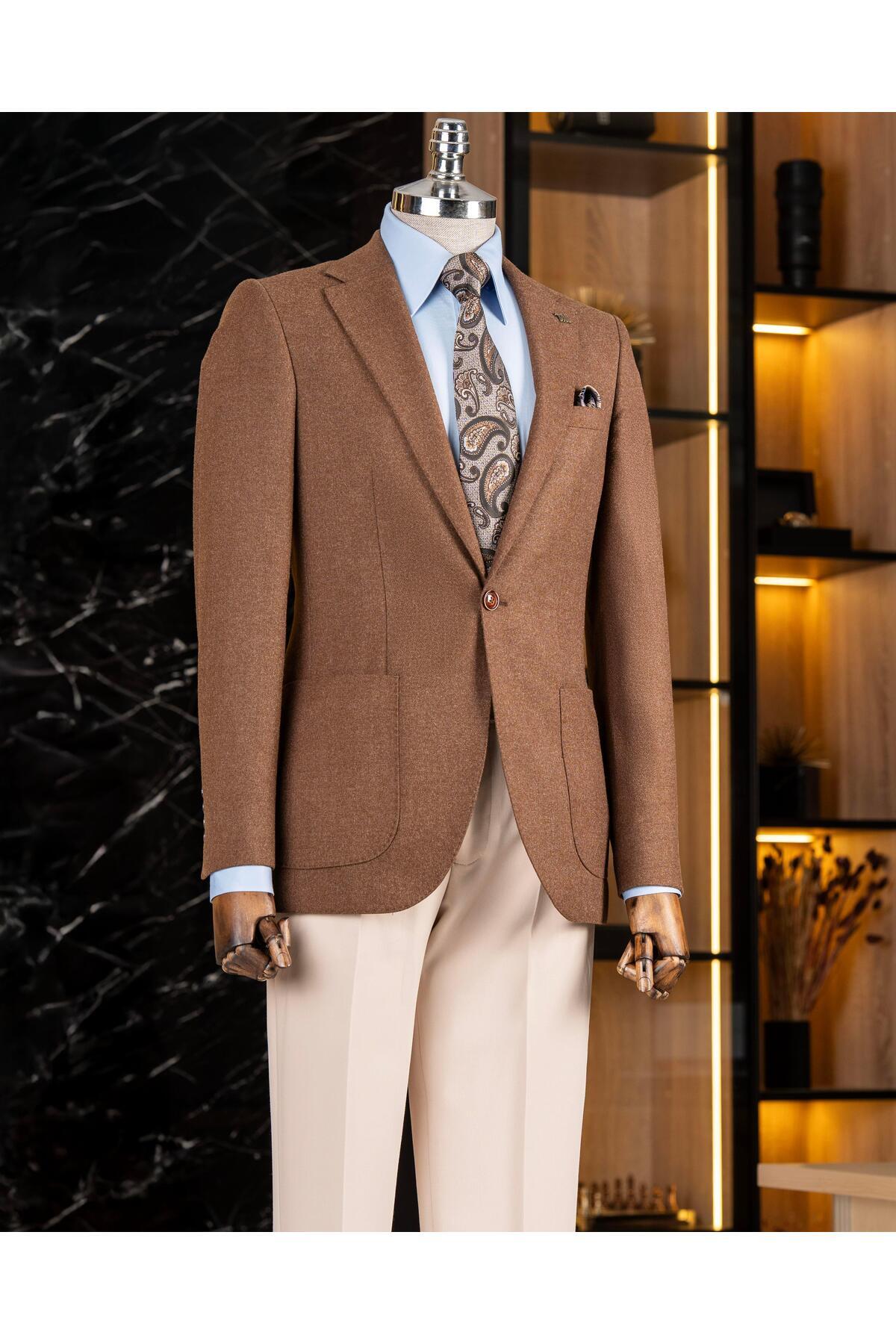 İtalyan stil slim fit mono yaka erkek ceket krem T11532 İtalyan stil slim fit mono yaka erkek ceket krem T11532 52