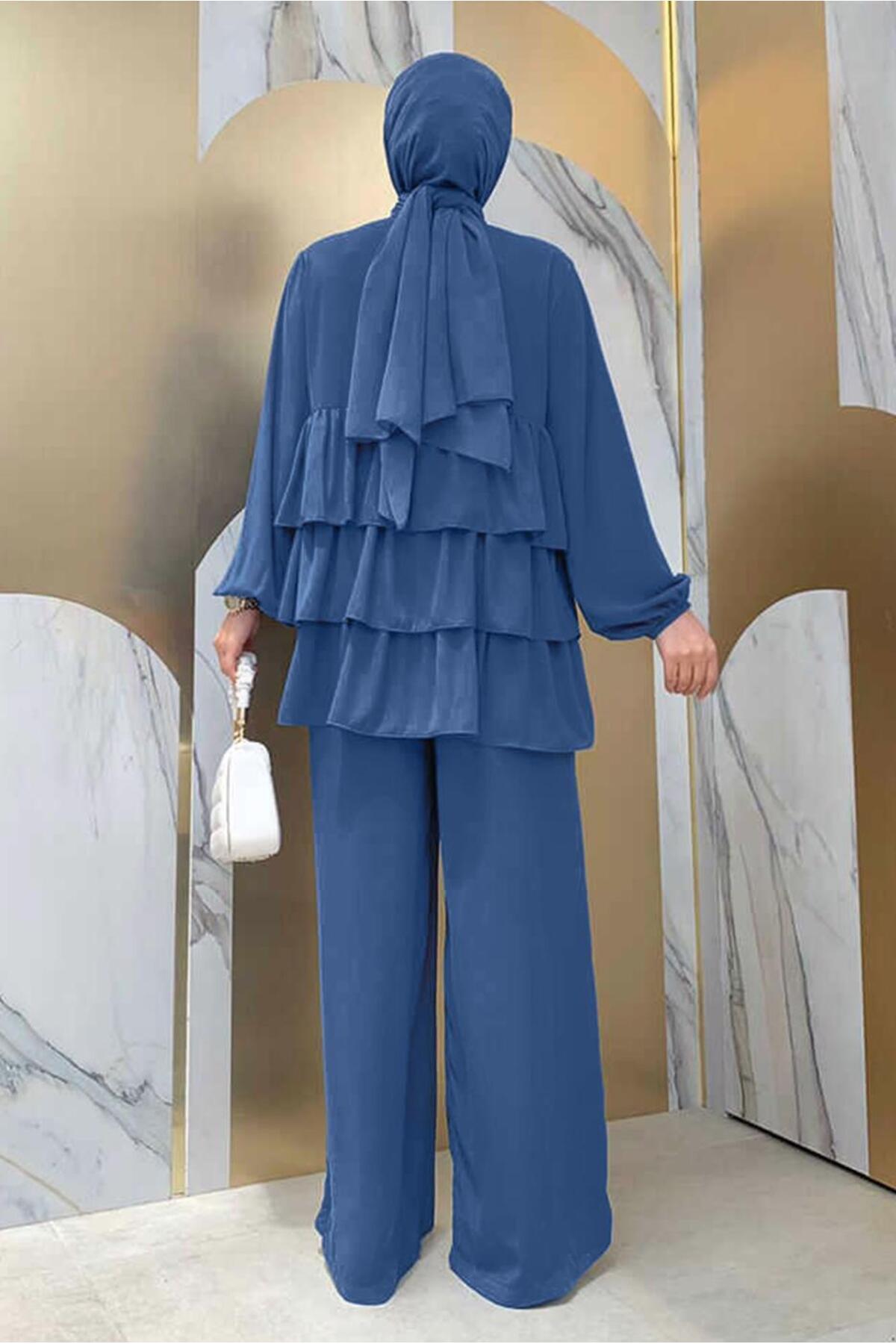KADIN LACİVERT (İNDİGO) VOLAN DETAYLI PANTOLONLU TAKIM T 1648 KADIN LACİVERT (İNDİGO) VOLAN DETAYLI PANTOLONLU TAKIM T 1648 24YTKPTR1648 تک سایز