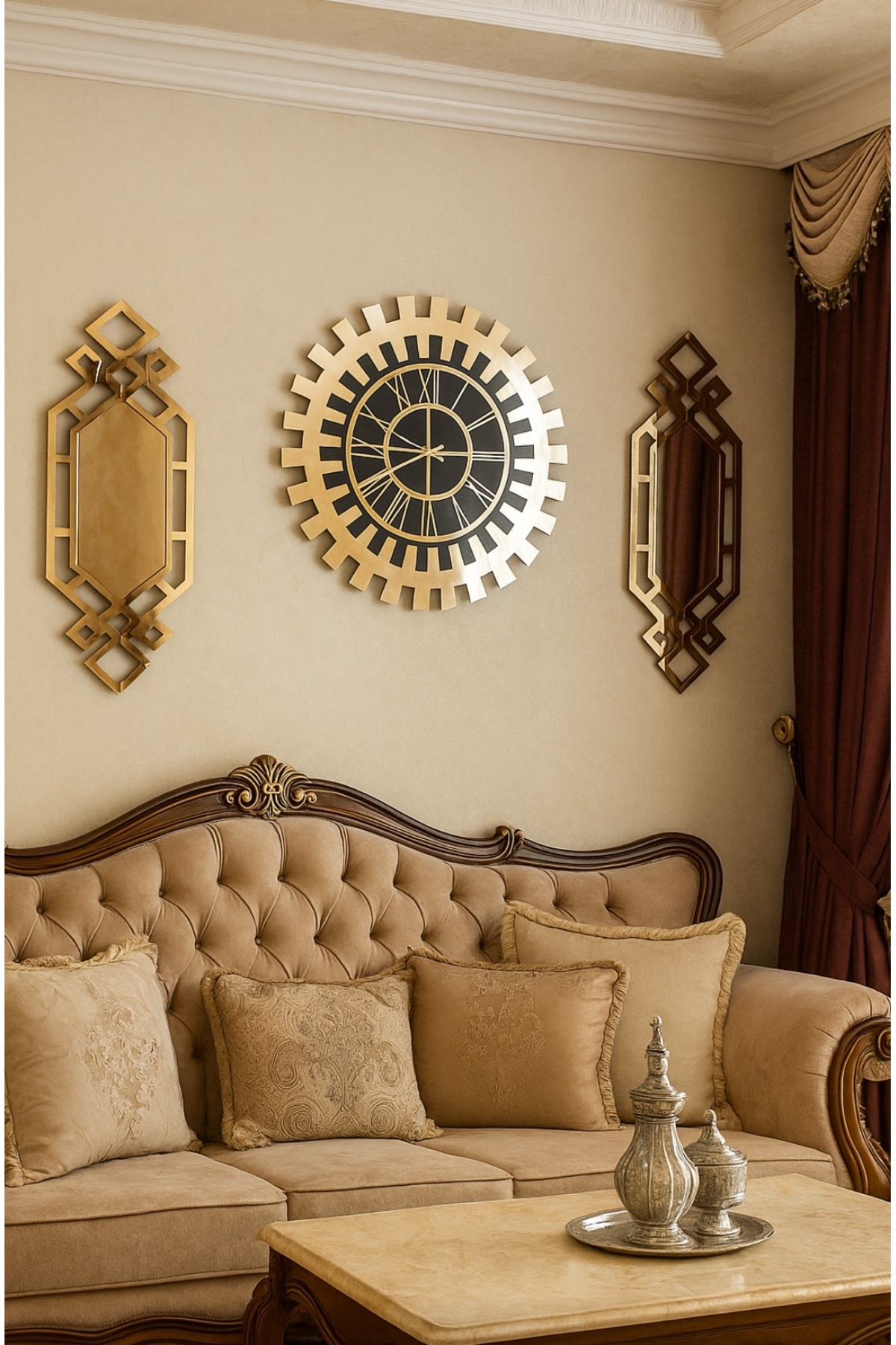 Büyük Boy XL Gold Renk Ayna Dekoratif Duvar Saati ve Tablolar Hediyelik Saat Büyük Boy XL Gold Renk Ayna Dekoratif Duvar Saati ve Tablolar Hediyelik Saat EyksYxlpltgold تک سایز