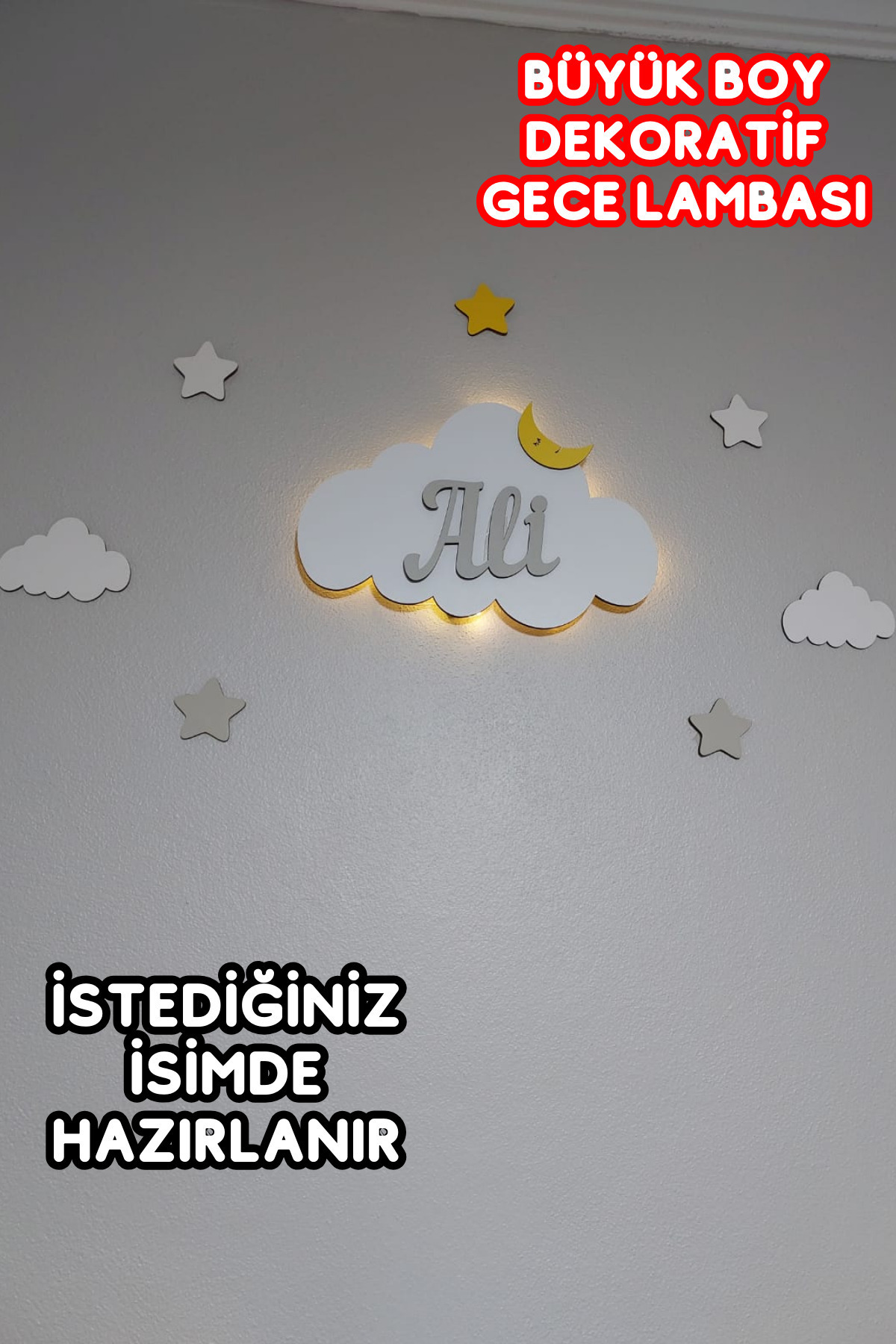 İsme Özel Ahşap Isimli Bulut Gece Lambası Ledli Aydınlatma Bebek Çocuk Odası Dekorasyon İsme Özel Ahşap Isimli Bulut Gece Lambası Ledli Aydınlatma Bebek Çocuk Odası Dekorasyon arserbebek 35 x 23