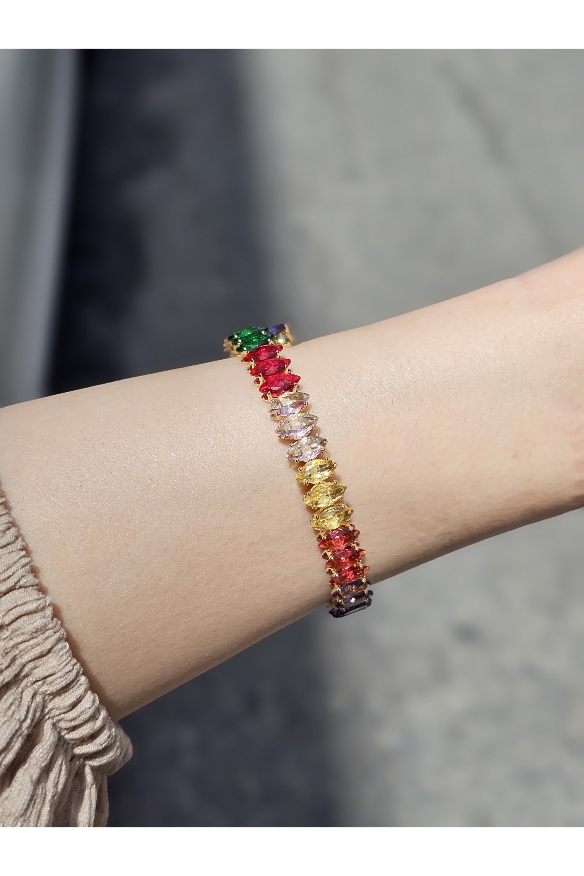 Renkli Kare Taşlı Esnek Bileklik Renkli Kare Taşlı Esnek Bileklik MYL0000004419 تک سایز