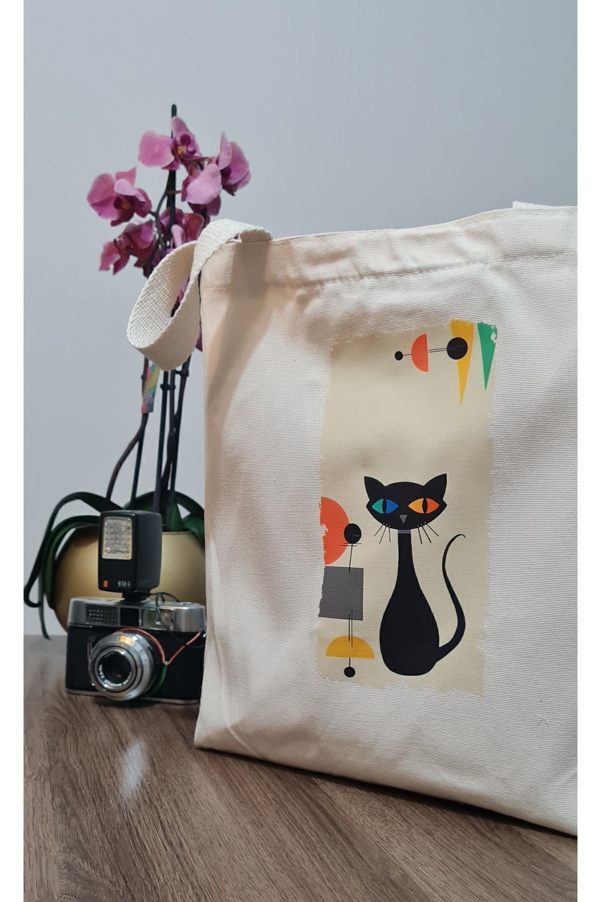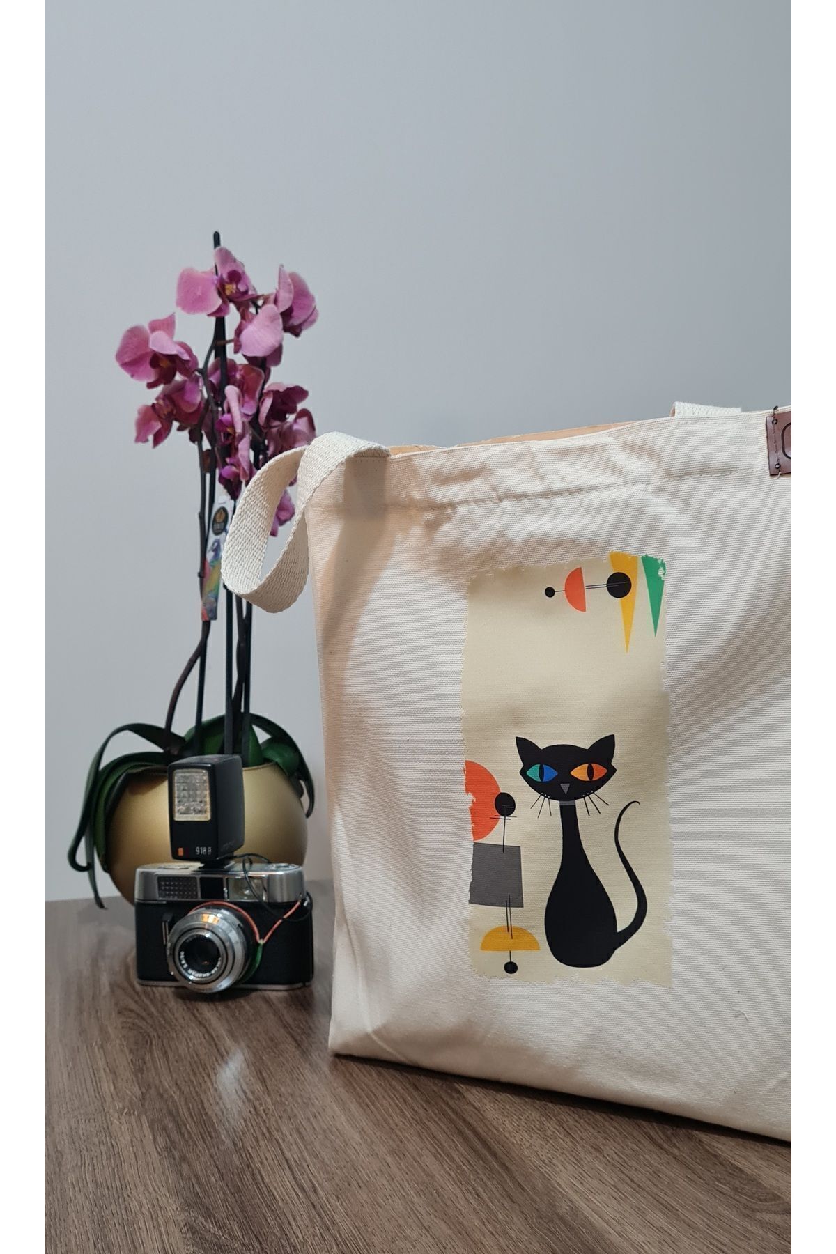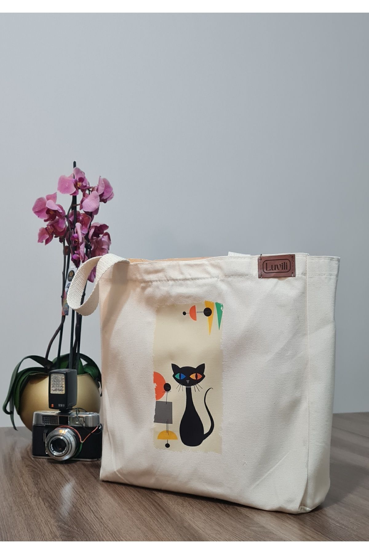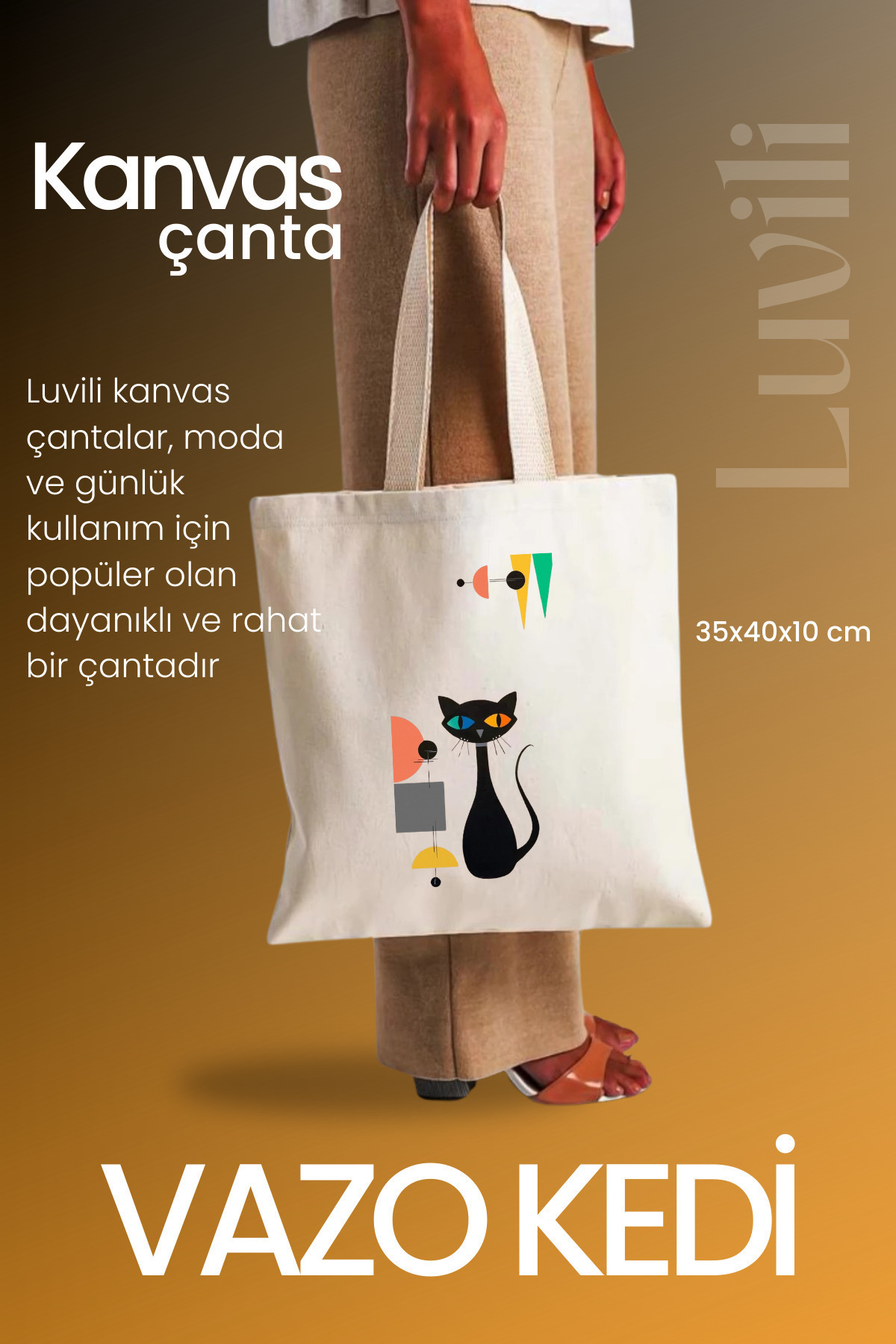 Çanta, Kanvas Bez Çanta Baskılı Körüklü | Vazo Kedi Çanta Çanta, Kanvas Bez Çanta Baskılı Körüklü | Vazo Kedi Çanta LVP05 L