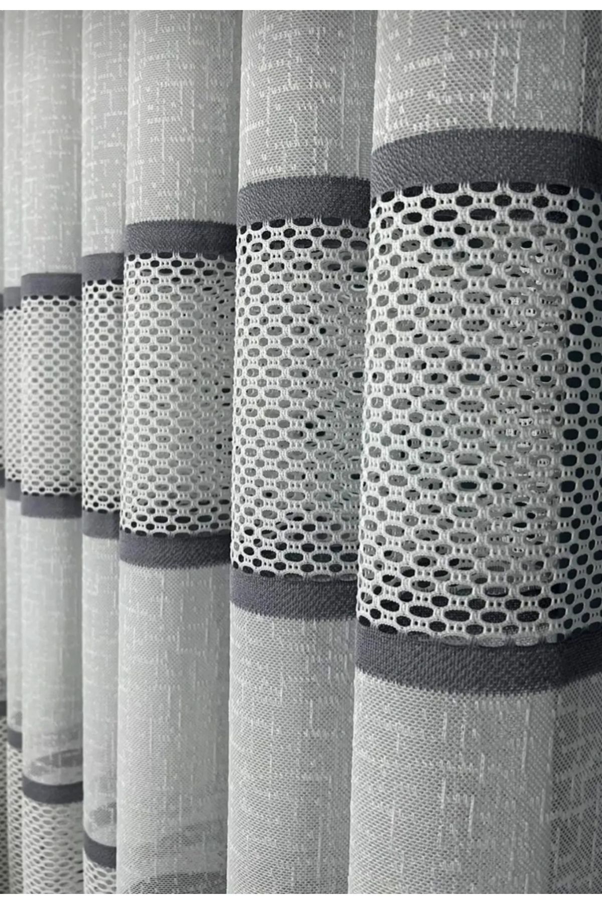 KULLANIMA HAZIR GRİ ŞERİTLİ APLİK ÖRME SIK PİLELİ 1X3 TÜL PERDE KULLANIMA HAZIR GRİ ŞERİTLİ APLİK ÖRME SIK PİLELİ 1X3 TÜL PERDE lntaplksk 340 x 240