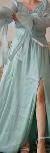 ANIKA Su Yeşili Yırtmaçlı V Yaka Gece Elbisesi ANIKA Su Yeşili Yırtmaçlı V Yaka Gece Elbisesi 6052 44