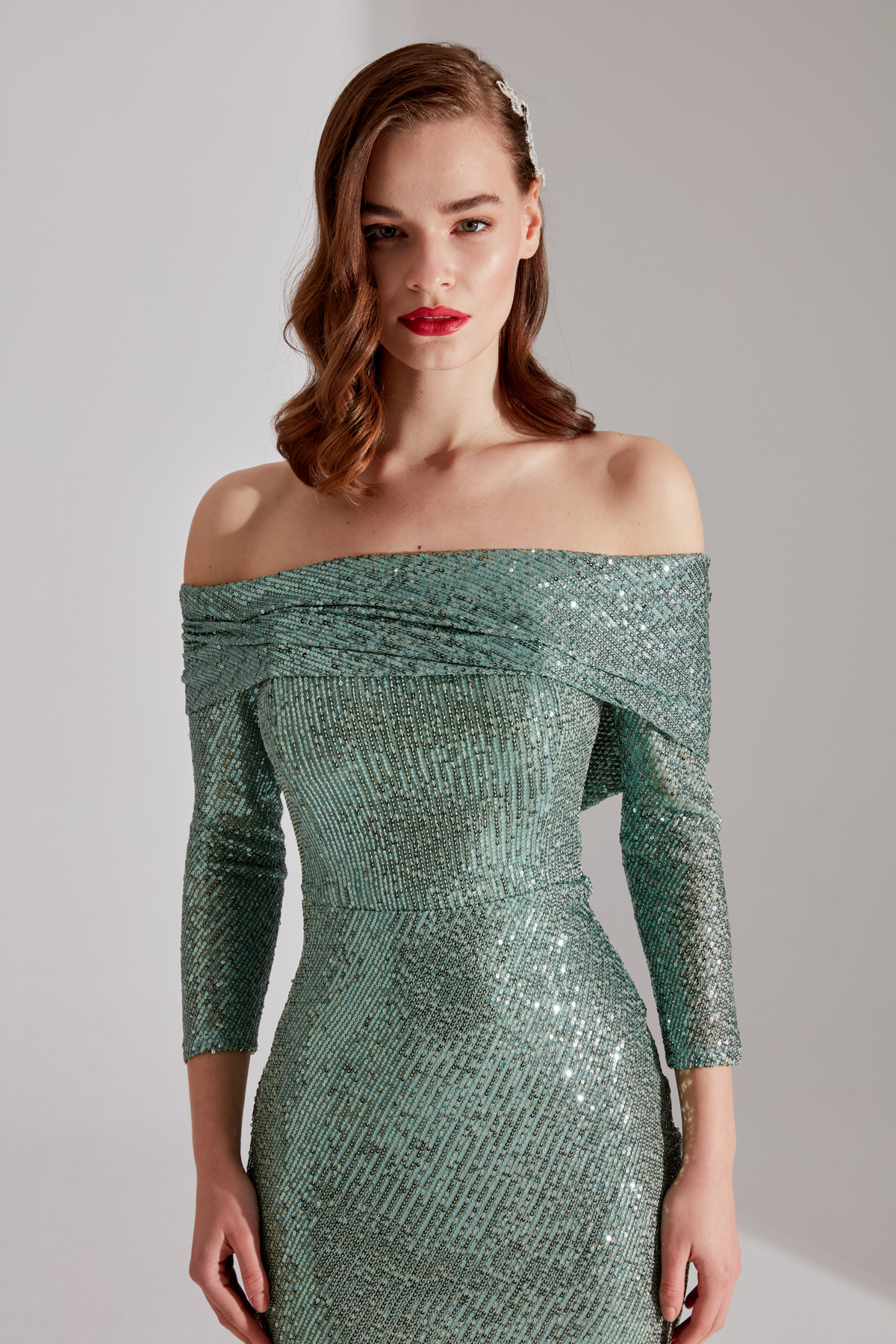 NATALIA Payetli Su Yeşili Düşük Omuz Kalem Etek Gece Elbisesi NATALIA Payetli Su Yeşili Düşük Omuz Kalem Etek Gece Elbisesi 6062 44