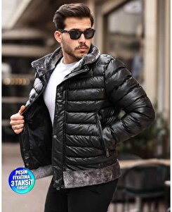 Erkek Siyah Kürk Detaylı LFN Şişme Deri Mont Erkek Siyah Kürk Detaylı LFN Şişme Deri Mont ŞişmeDeriMont13 2XL