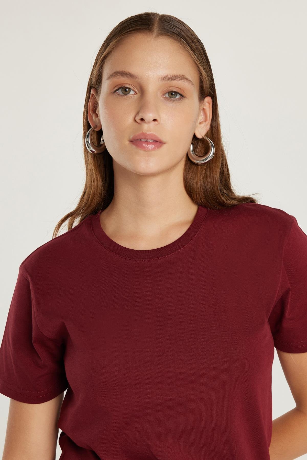 Unisex Slim Fit Dar Kesim %100 Pamuk Yumuşak Dokulu Bordo Bisiklet Yaka Tişört Unisex Slim Fit Dar Kesim %100 Pamuk Yumuşak Dokulu Bordo Bisiklet Yaka Tişört ST240001-01 3XL