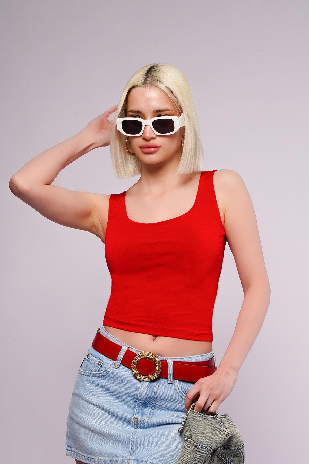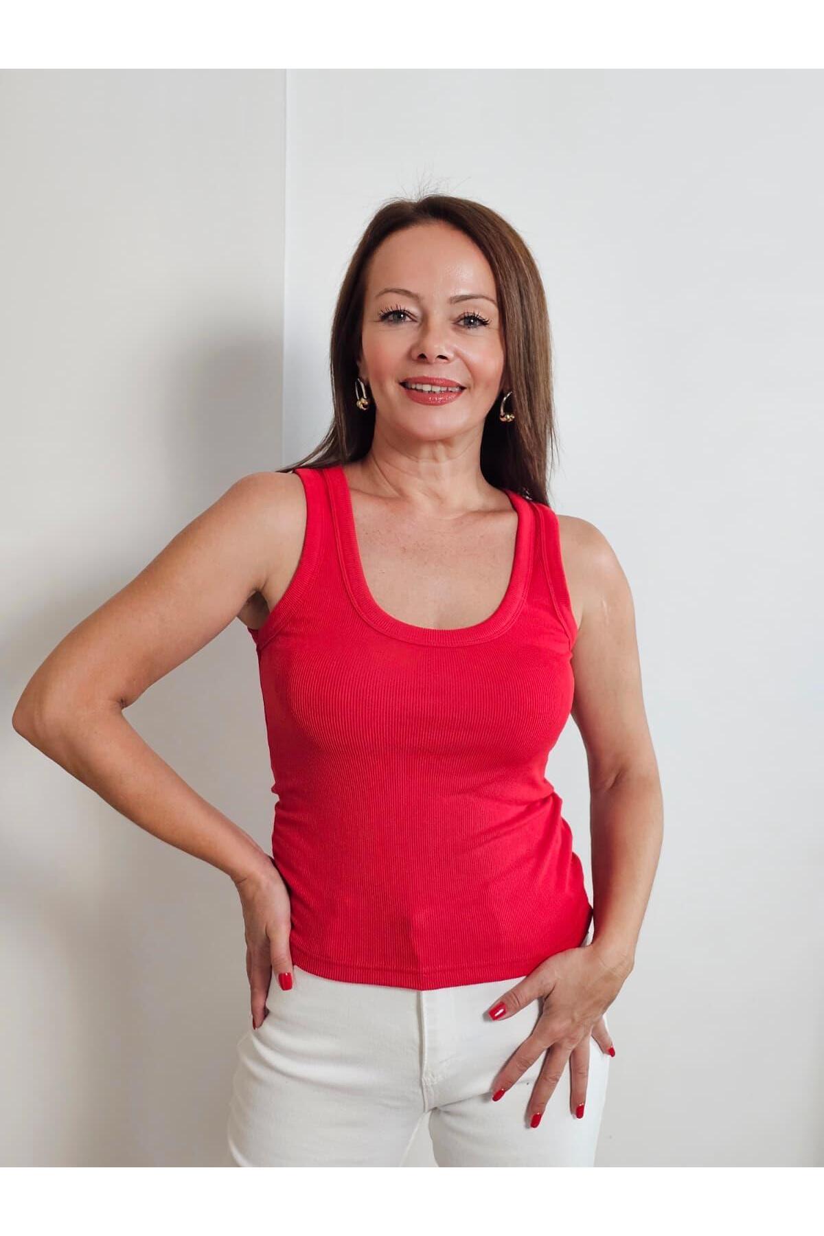 Kırmızı Kalın Askılı Kadın Bluz MG1998 Kırmızı Kalın Askılı Kadın Bluz MG1998 XL