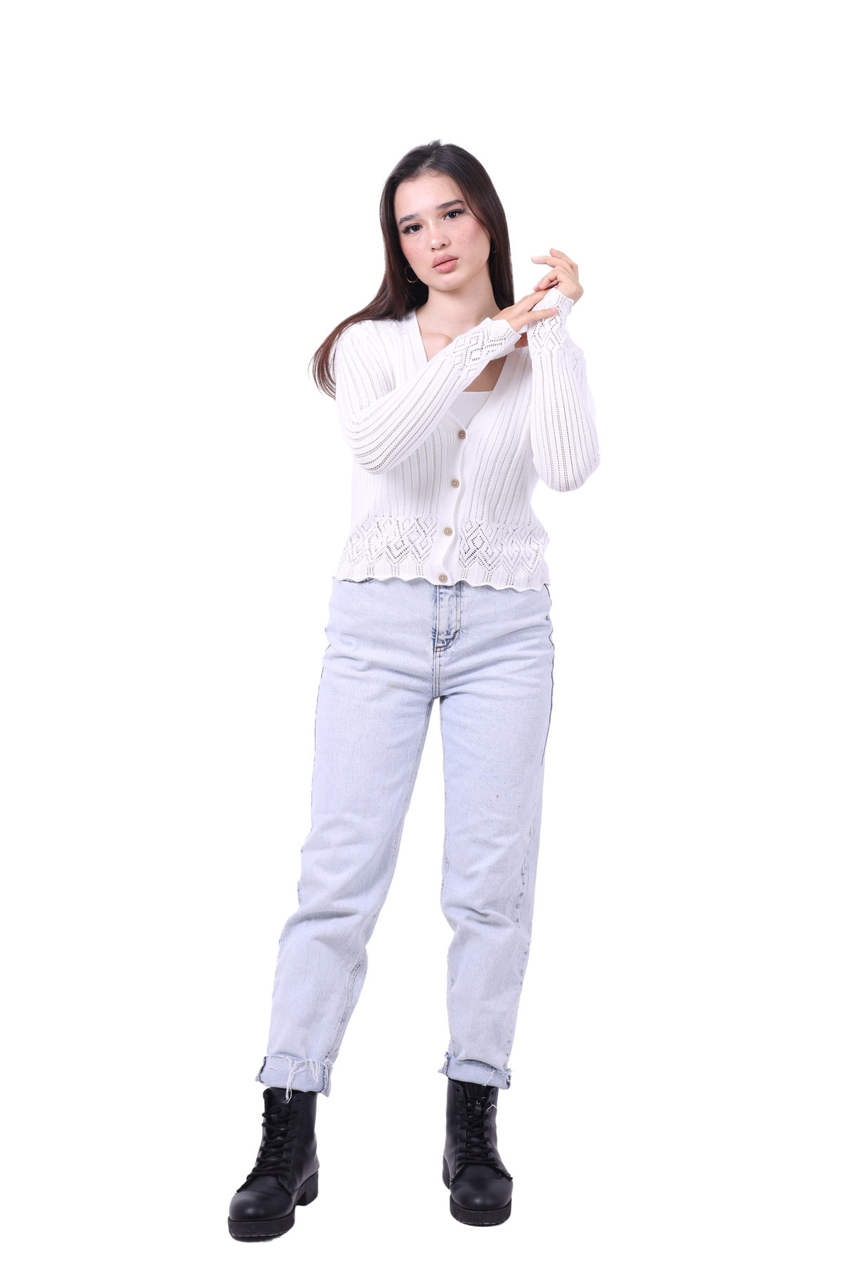 Kadın Virka Ajurlu Ince Triko Hırka Beyaz Kadın Virka Ajurlu Ince Triko Hırka Beyaz HÖ-K-008-07 L