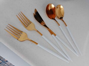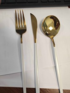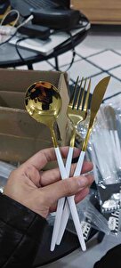 6 kişilik Gold beyaz paslanmaz çelik çatal bıçak kaşık seti 18 parça( yemek grubu) 6 kişilik Gold beyaz paslanmaz çelik çatal bıçak kaşık seti 18 parça( yemek grubu) beyazgoldst تک سایز