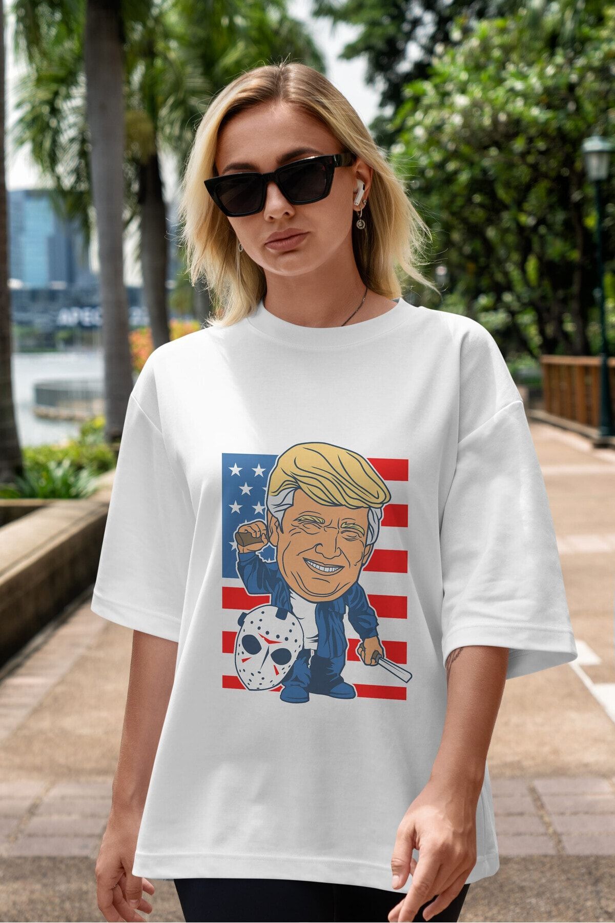 Jason Voorhess Trump Ön Baskılı Gri Oversize T-shirt Unisex Erkek Kadın Bisiklet Yaka Jason Voorhess Trump Ön Baskılı Gri Oversize T-shirt Unisex Erkek Kadın Bisiklet Yaka CILEXI1000021 XL