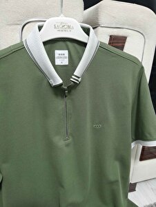 ERKEK HAKİ FERMUARLI POLO YAKA T-SHİRT ERKEK HAKİ FERMUARLI POLO YAKA T-SHİRT CNLX05152Y273 2XL
