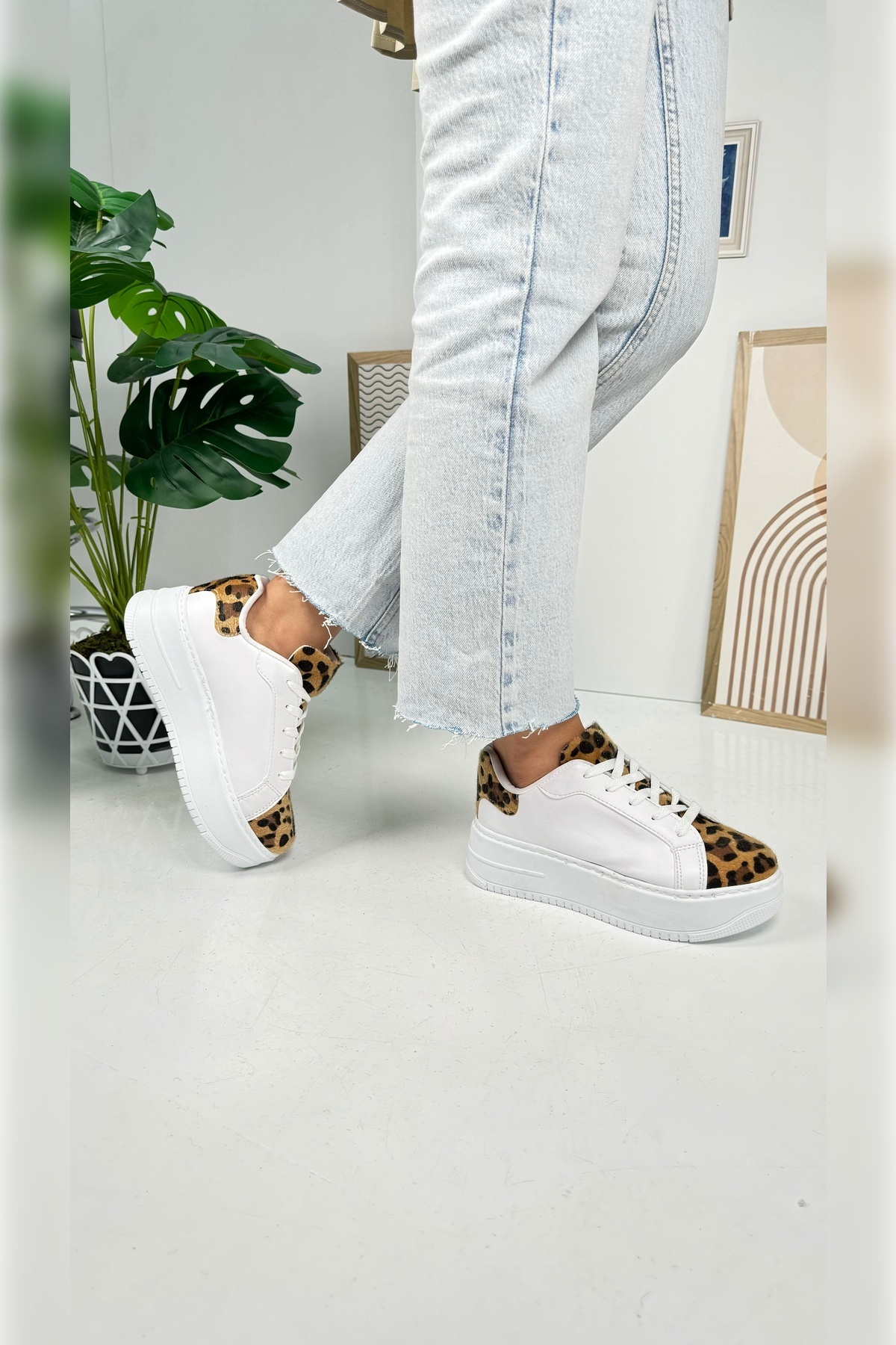 Günlük Kadın Beyaz Sneaker Bağcıklı Hafif Kalın Yüksek Tabanlı Leopar Detaylı Spor Ayakkabı 065 Günlük Kadın Beyaz Sneaker Bağcıklı Hafif Kalın Yüksek Tabanlı Leopar Detaylı Spor Ayakkabı 065 PRA-10459834-503281 40