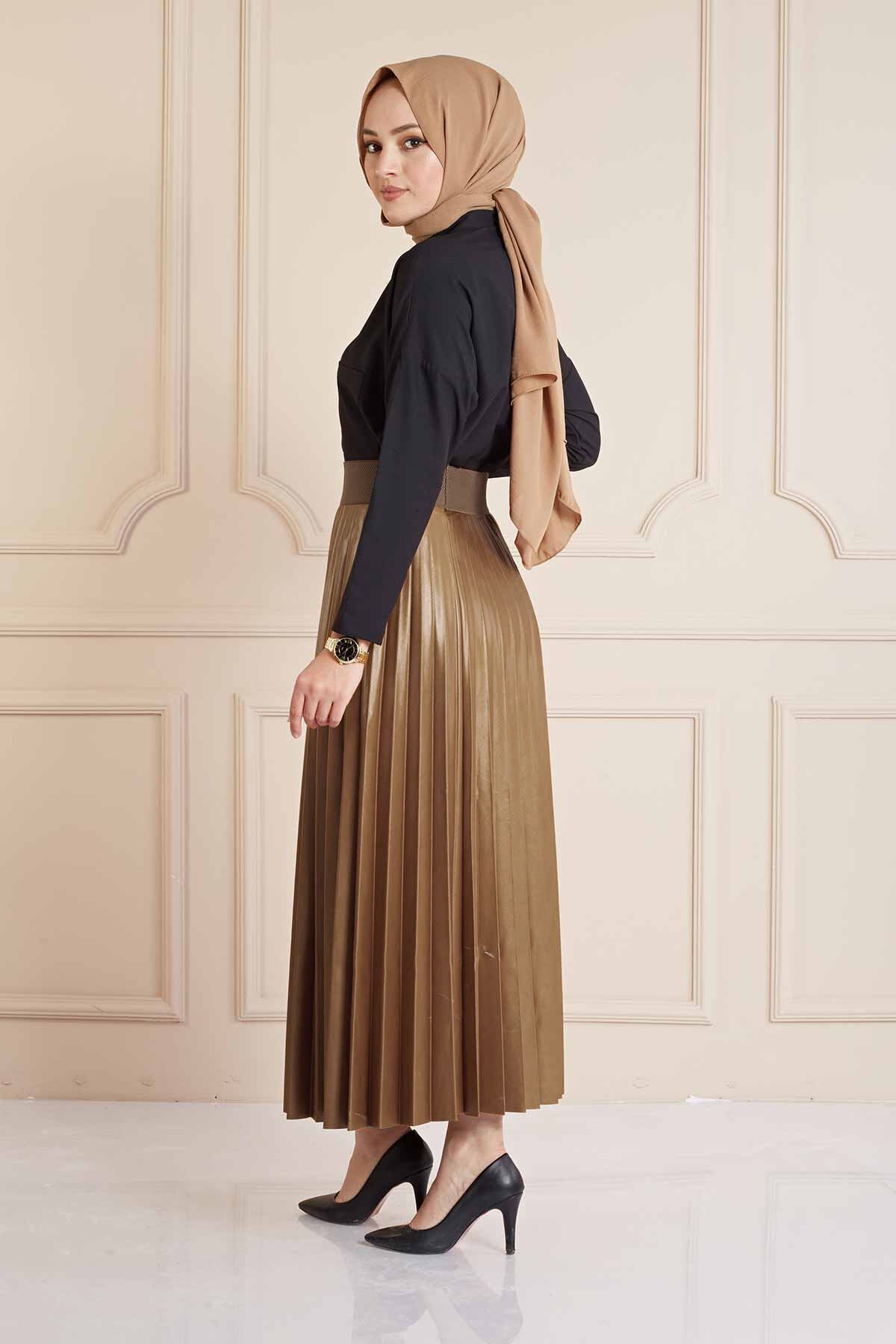 Kadın Deri Görünümlü Beli Lastikli Piliseli Siyah Etek - Me000265 Kadın Deri Görünümlü Beli Lastikli Piliseli Siyah Etek - Me000265 ME000262 42