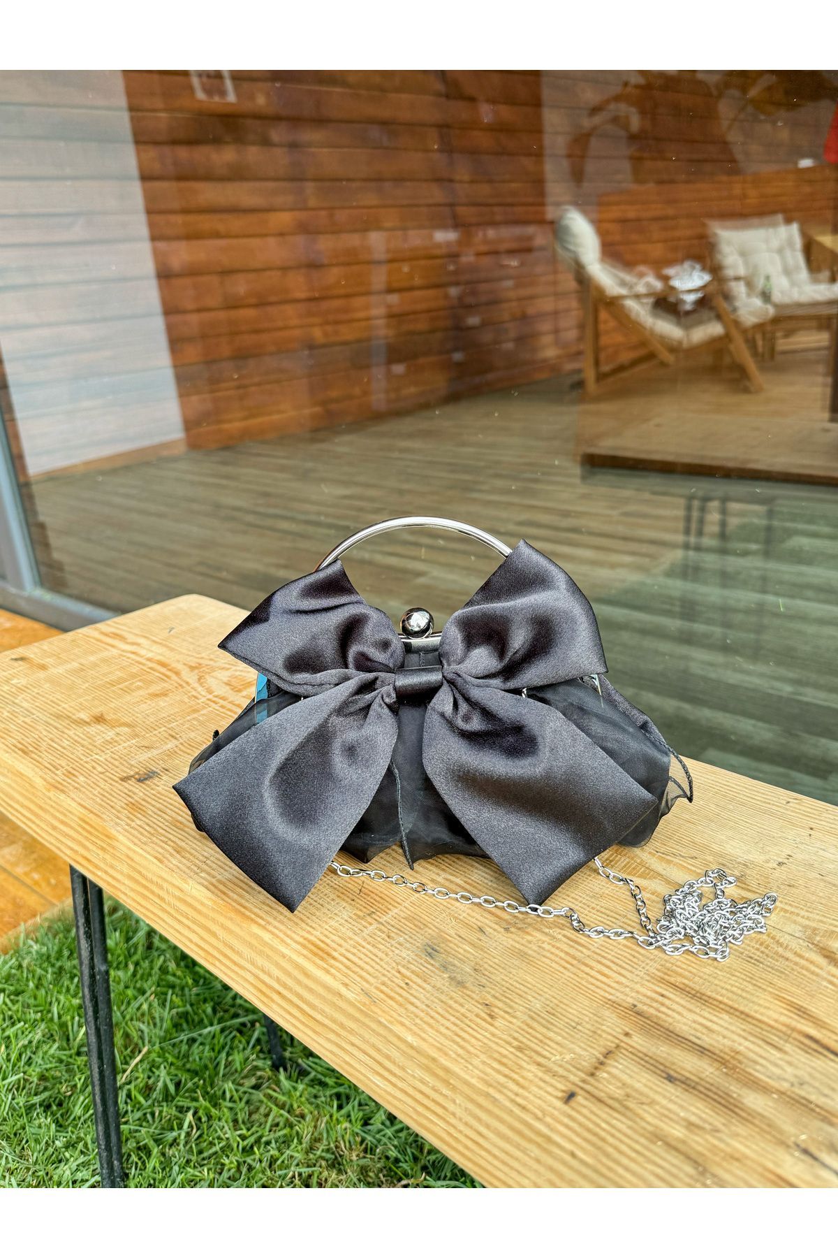 Saten Fiyonk Çanta Gümüş detaylı Saten Fiyonk Çanta Gümüş detaylı 214 تک سایز