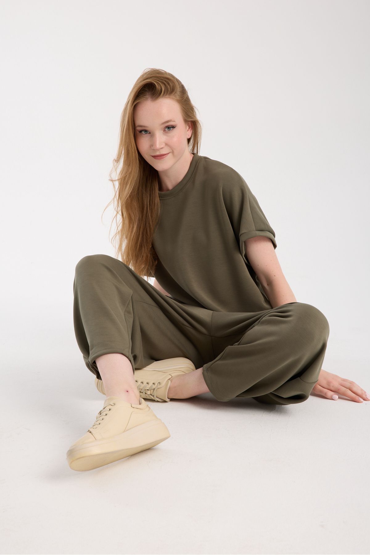 Kahve Soluk Efektli Tshirt Şalvar Pantolon Takım Kahve Soluk Efektli Tshirt Şalvar Pantolon Takım 079.TKM.0006 Standart