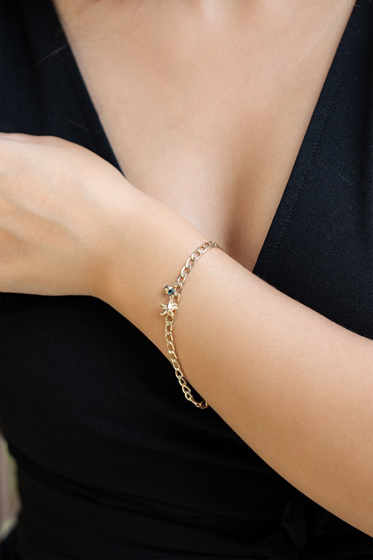 Nazar Boncuklu Altın Bileklik Nazar Boncuklu Altın Bileklik T056286 تک سایز