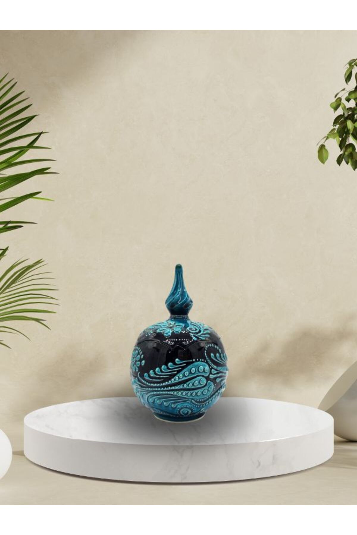 Turkuaz Renkli El Yapımı Dekoratif ve Hediyelik Kapaklı Şekerlik Turkuaz Renkli El Yapımı Dekoratif ve Hediyelik Kapaklı Şekerlik SCSTRKAZ0001 تک سایز