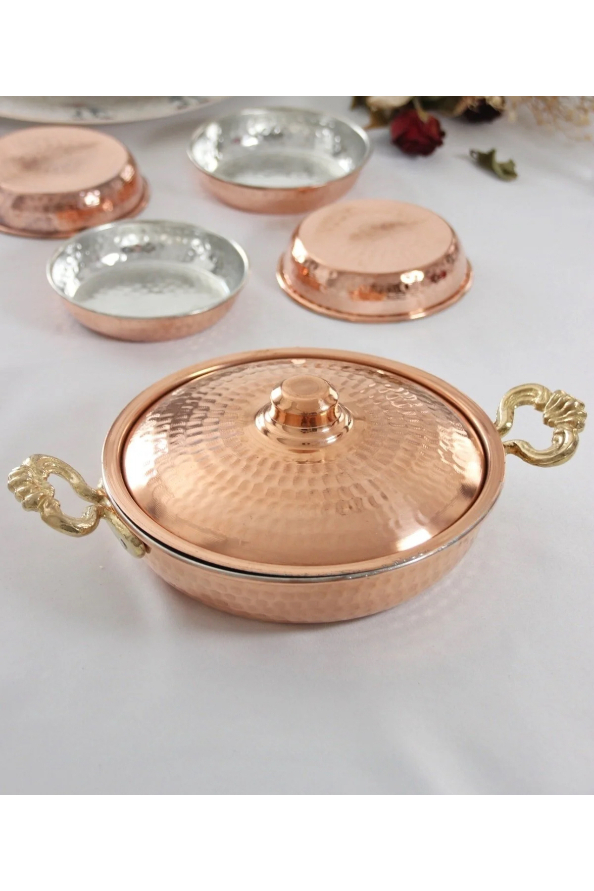 Bakır reşolu kapaklı kebap servis tabağı Bakır reşolu kapaklı kebap servis tabağı 27567643376 تک سایز