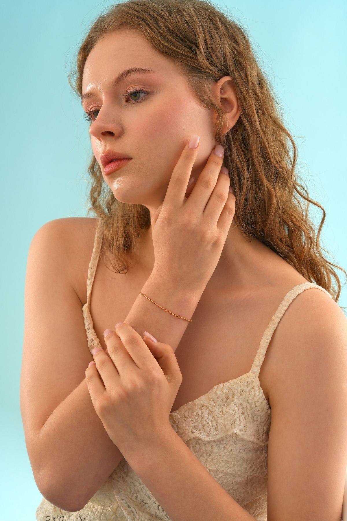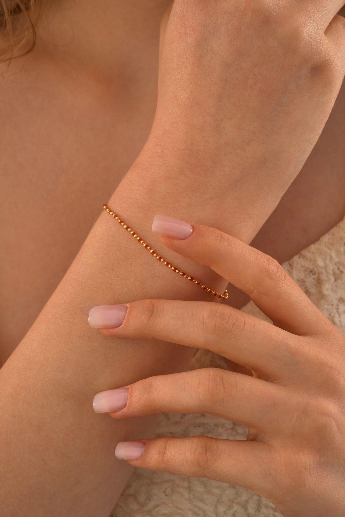 14 Ayar Kırmızı Mineli Altın Bileklik 14 Ayar Kırmızı Mineli Altın Bileklik BRC241 18 cm