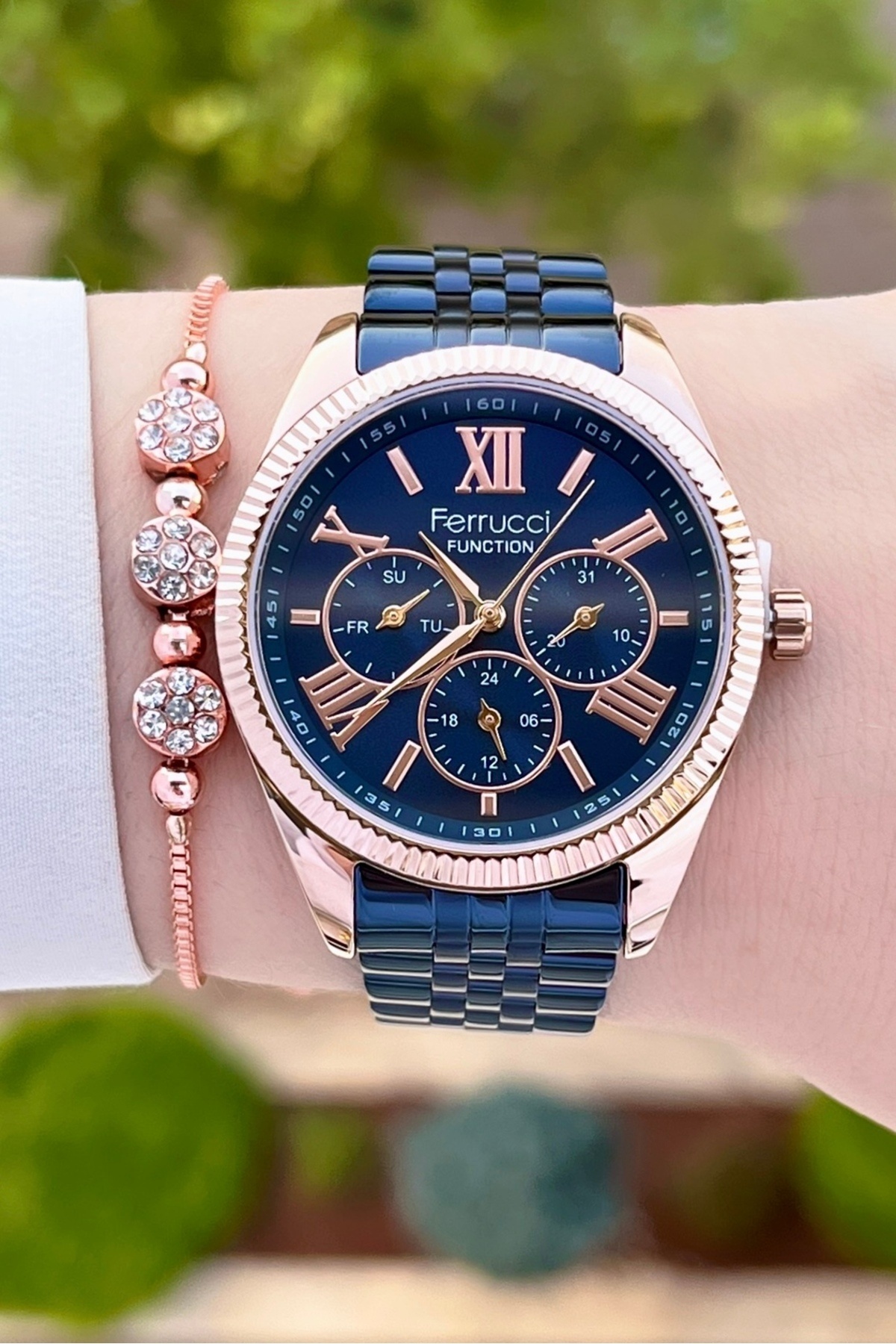 Kasası Rose Kordonu Lacivert Renk Hediye Paketli Kadın Kol Saati ve Bileklik Kasası Rose Kordonu Lacivert Renk Hediye Paketli Kadın Kol Saati ve Bileklik FCFISTEO3322FM تک سایز