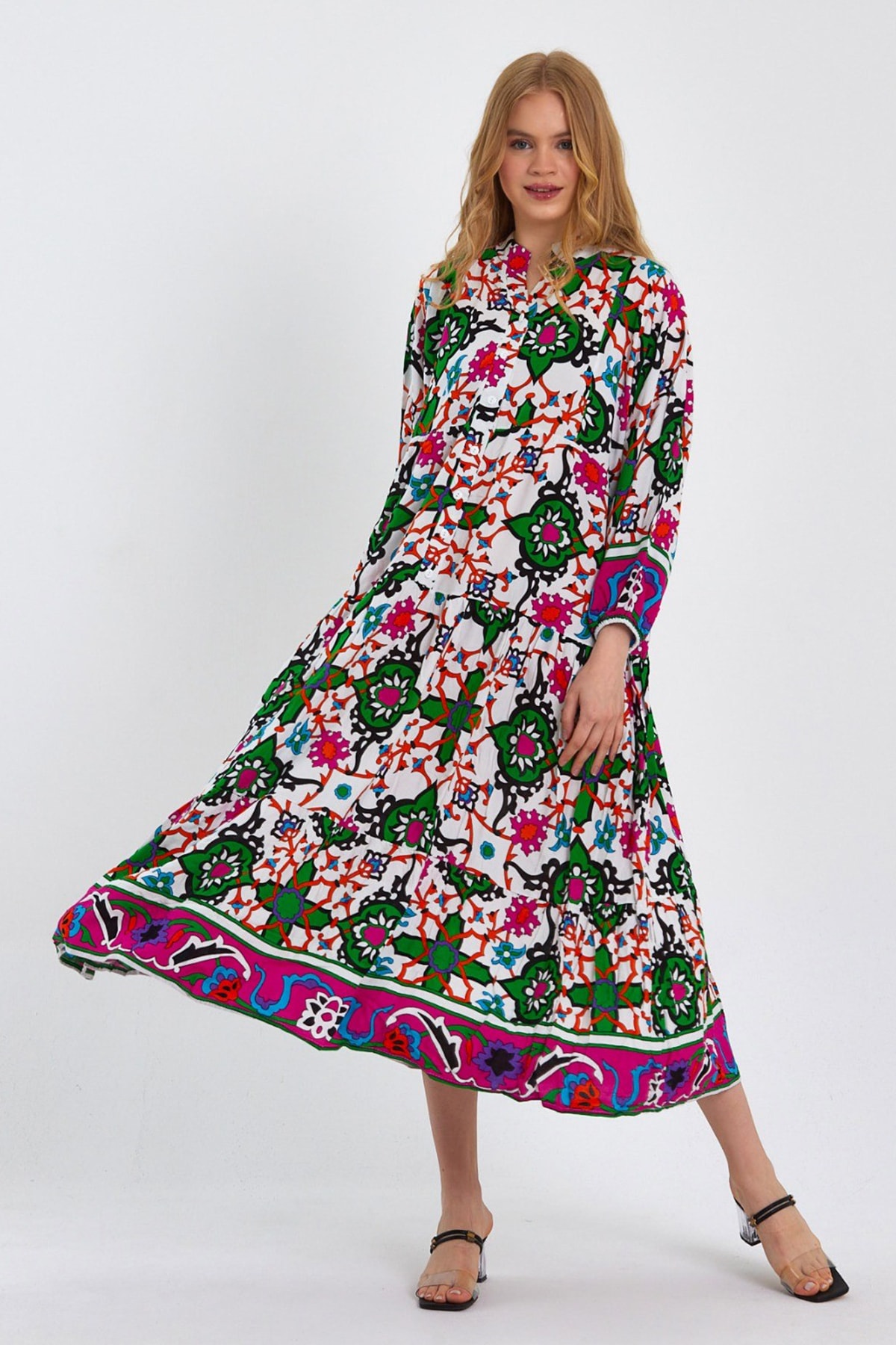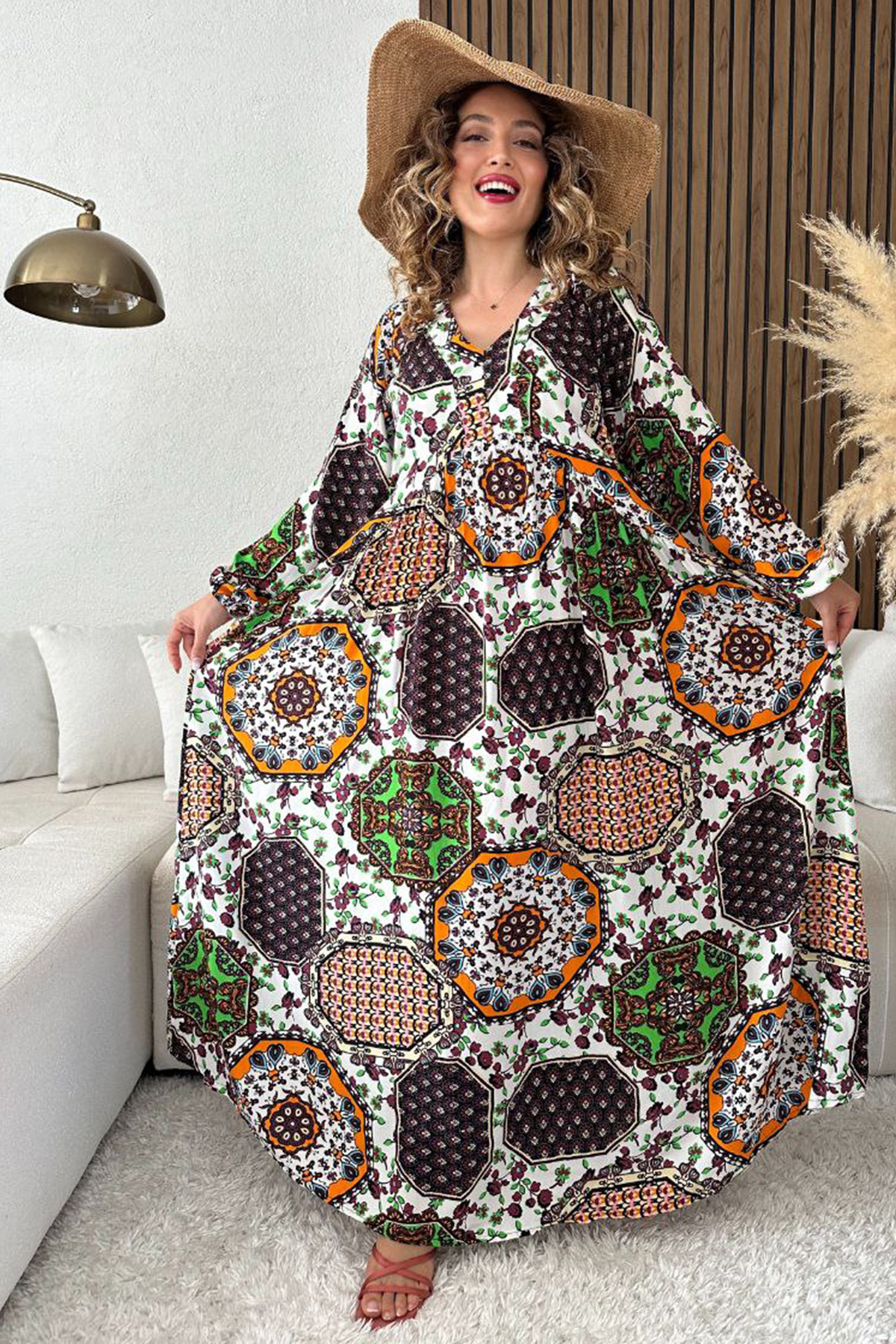 Kadın Yeşil Düğme Detaylı Patlı Yakalı Balon Kollu Etnik Desenli Uzun Elbise Kadın Yeşil Düğme Detaylı Patlı Yakalı Balon Kollu Etnik Desenli Uzun Elbise 20562056-BESTELLA XL
