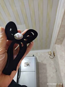 Siyah Kadife Kurdele Şeklinde Incili Mandal Toka Siyah Kadife Kurdele Şeklinde Incili Mandal Toka RL-HAIR CLIPS-118 تک سایز