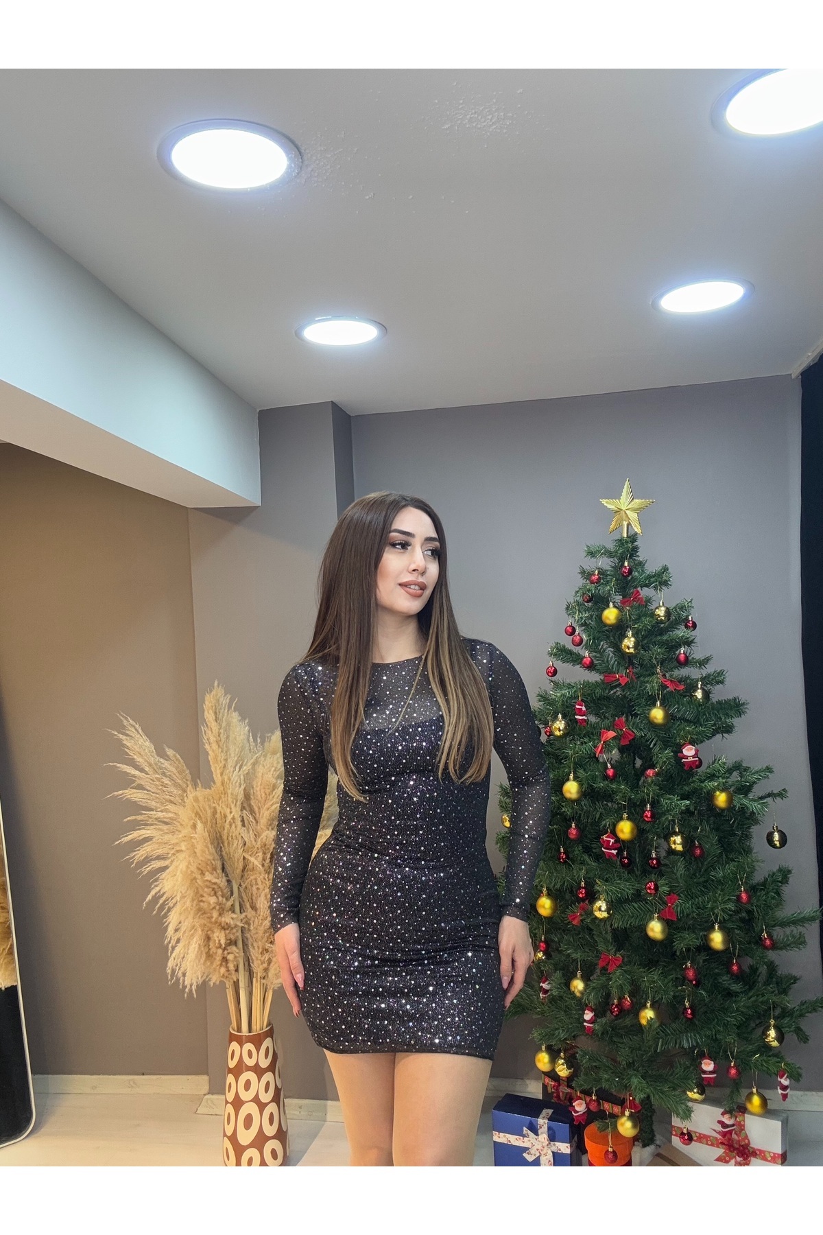DALGIÇ TAŞLI VATKALI MİNİ ELBİSE DALGIÇ TAŞLI VATKALI MİNİ ELBİSE 00200-2-2 XL