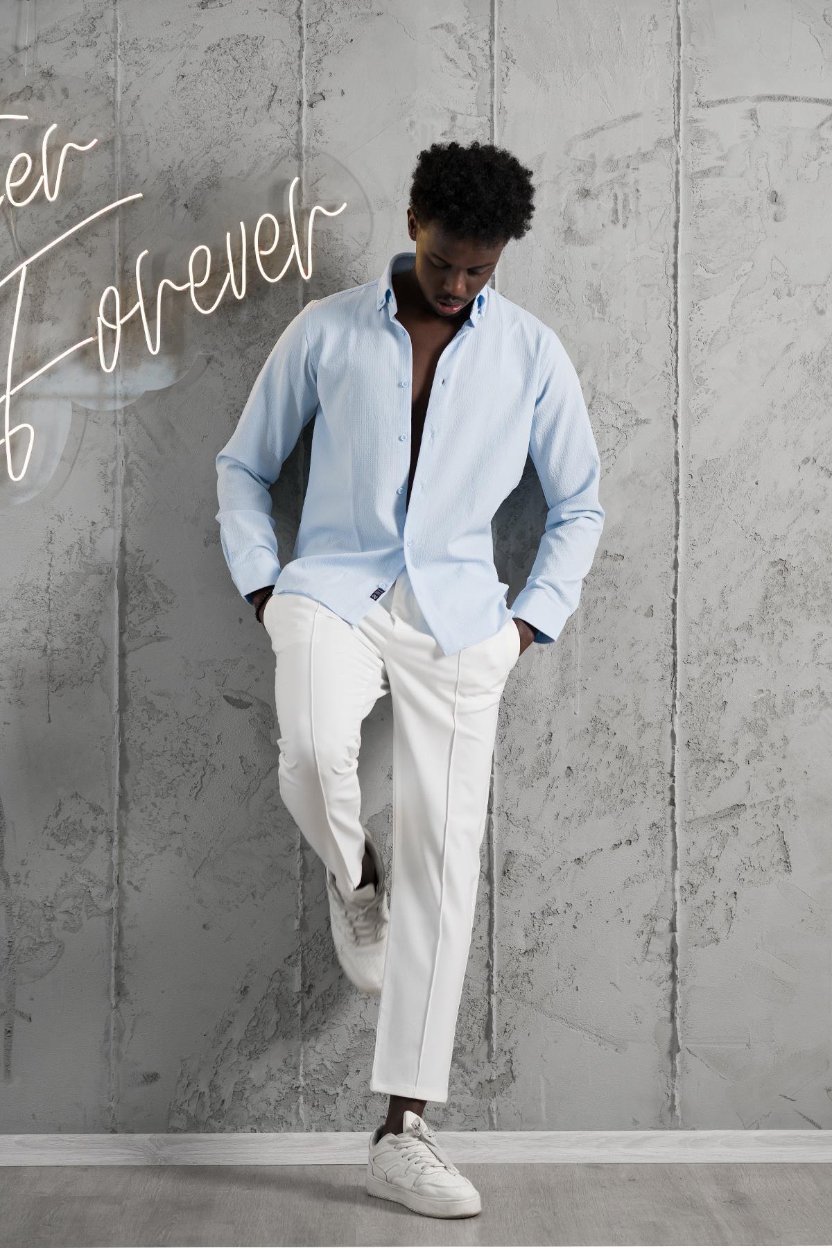 Armürlü Likralı Yaka Düğmeli Slimfit Yazlık Gofre Kumaş Gömlek Armürlü Likralı Yaka Düğmeli Slimfit Yazlık Gofre Kumaş Gömlek ADV2339 XL