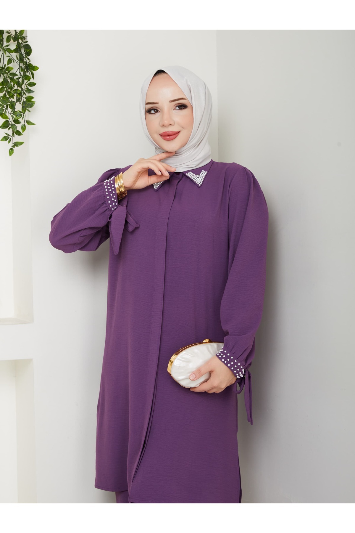 Yakası ve Manşeti İnci Boncuklu Büyük Beden İkili Tesettür Takım Yakası ve Manşeti İnci Boncuklu Büyük Beden İkili Tesettür Takım asya906 50-52