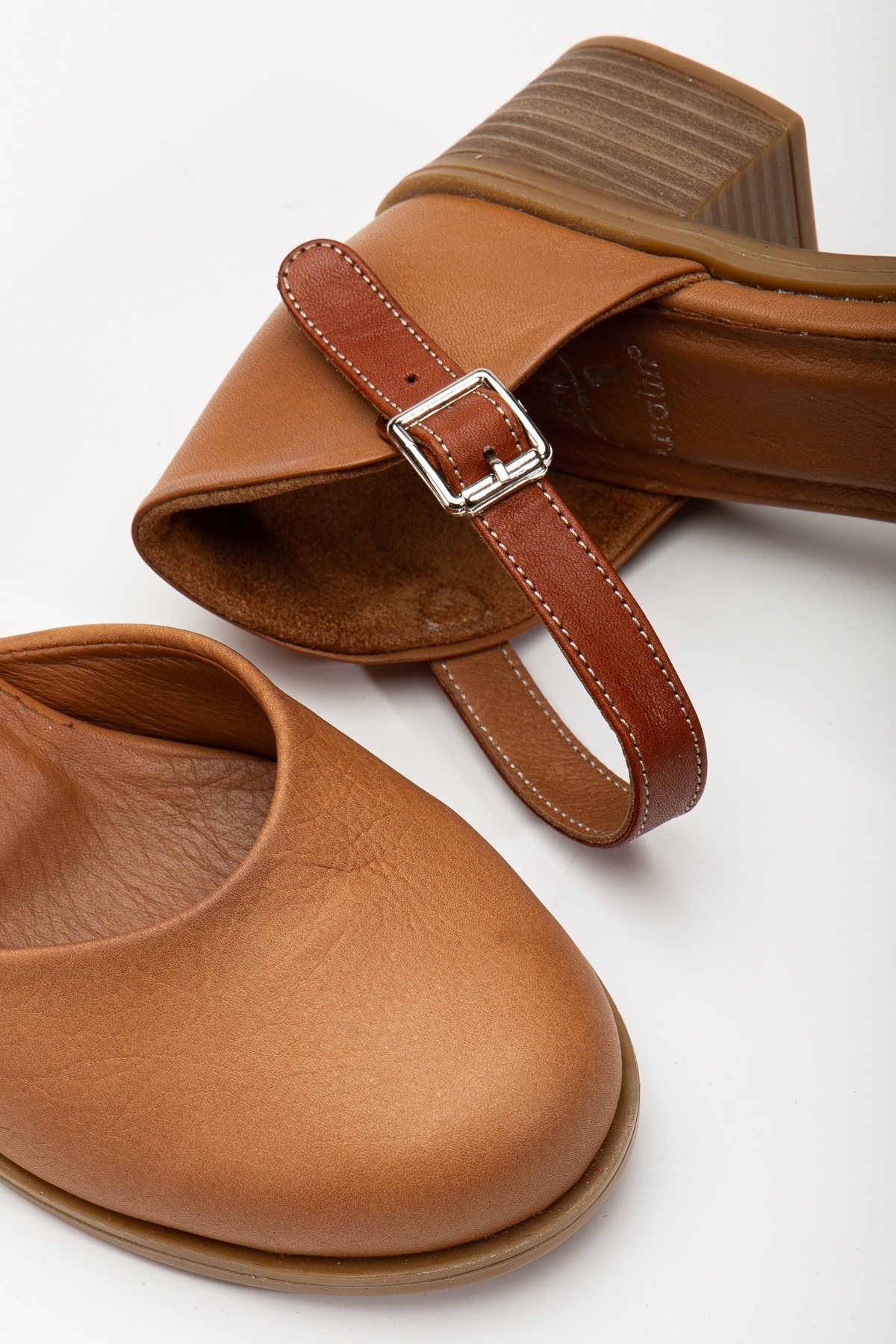 Kadın Hakiki Deri Burnu Kapalı Bilekten Bağlı Sandalet Taba Kadın Hakiki Deri Burnu Kapalı Bilekten Bağlı Sandalet Taba 2888 42