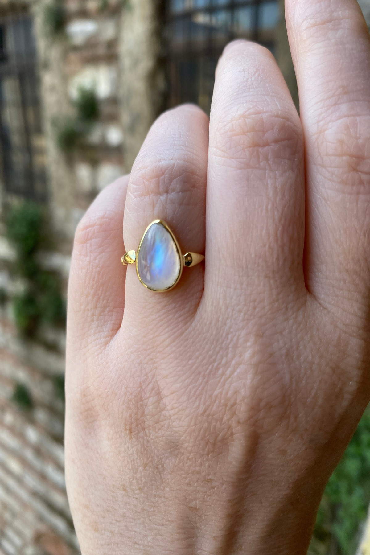 Doğal Ay Taşı Damla Gümüş Yüzük Doğal Ay Taşı Damla Gümüş Yüzük DAM1001-02 S