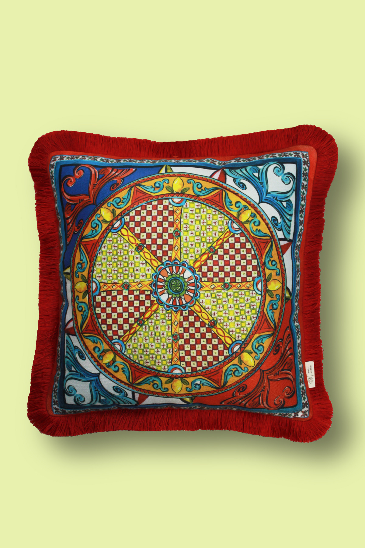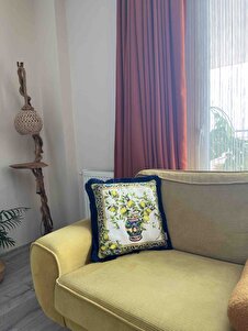 Saks Püsküllü, Etnik Güneş Desenli Yuvarlak Kırlent Çap:43cm (İç Dolgu Dahil) Saks Püsküllü, Etnik Güneş Desenli Yuvarlak Kırlent Çap:43cm (İç Dolgu Dahil) GDED00001 43 x 43