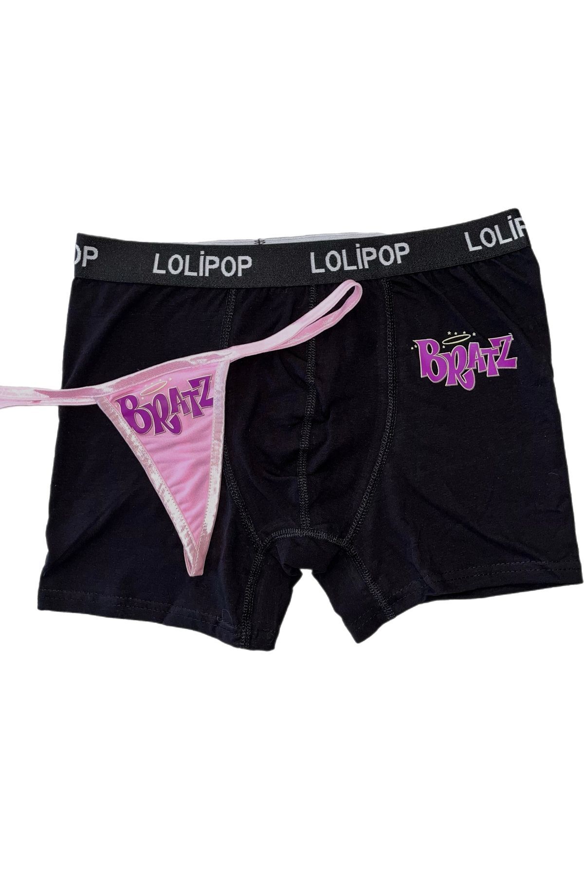 Hello Kitty Baskılı Boxer & Tanga Çift Set Hello Kitty Baskılı Boxer & Tanga Çift Set lolipop-000 L