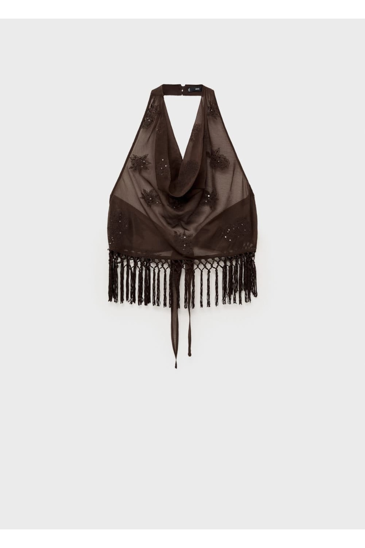 Somon Simli Saçaklı Toptan Bluz Somon Simli Saçaklı Toptan Bluz D2654 0