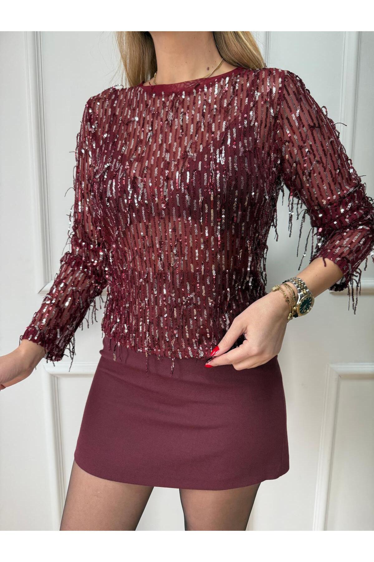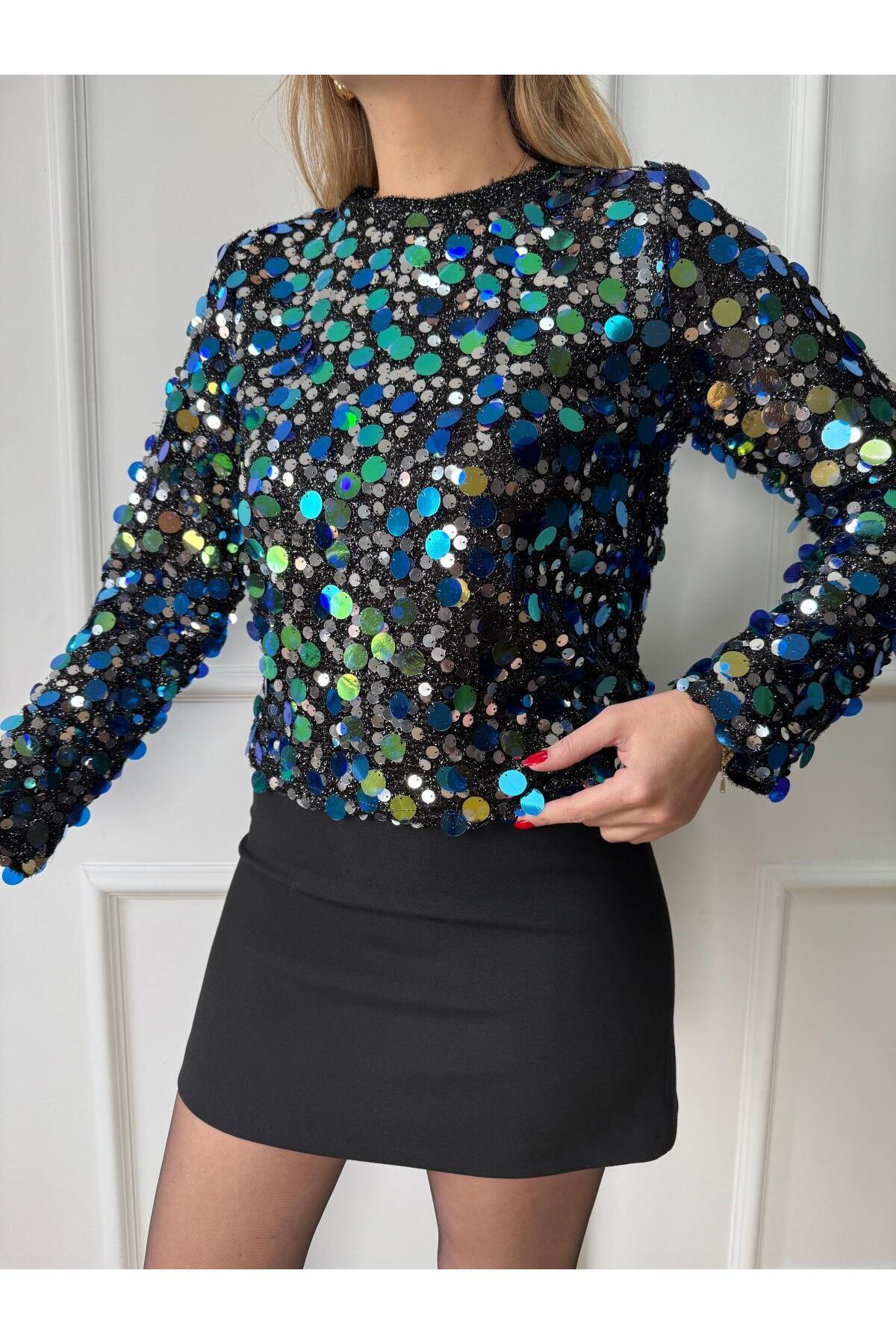 Kadın Pullu Pul Payet Disco Parlak Renk Renk Bluz Kadın Pullu Pul Payet Disco Parlak Renk Renk Bluz F1592 0