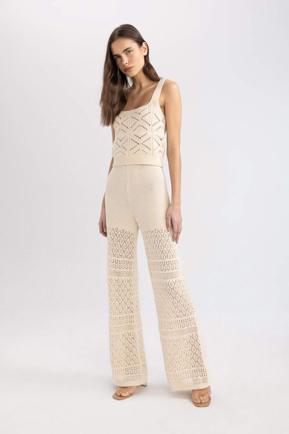 Wide Leg Geniş Paça Kroşe Astarlı Triko Pantolon C8622AX24SM Wide Leg Geniş Paça Kroşe Astarlı Triko Pantolon C8622AX24SM XL