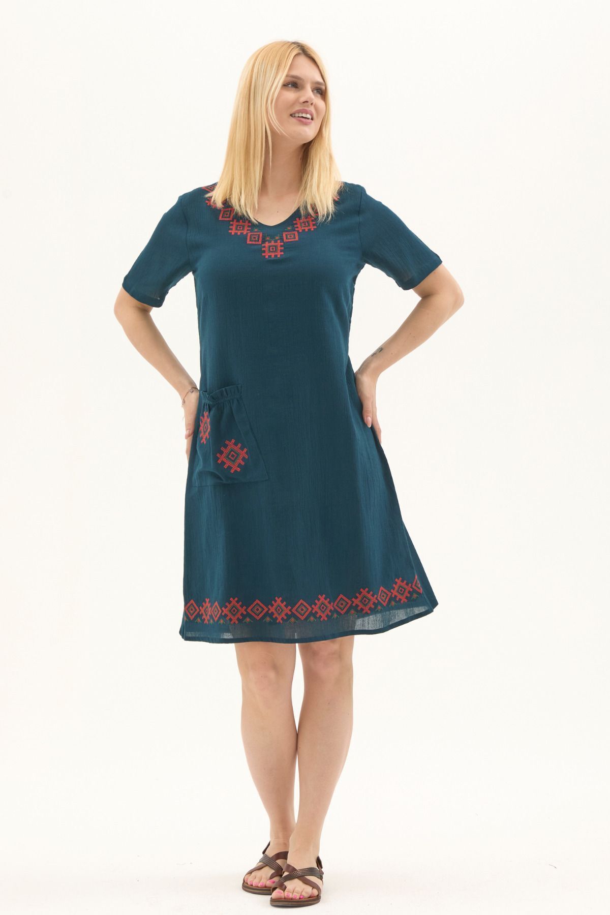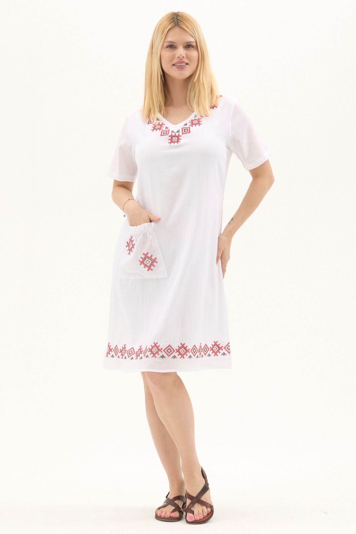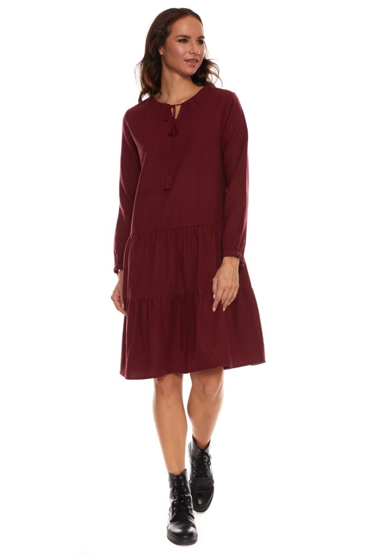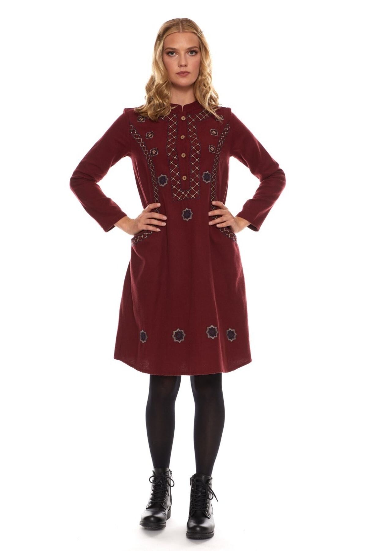 Şile Bezi Bordo Kısa Kol Kruvaze Yaka Nakışlı Yazlık Midi Elbise Şile Bezi Bordo Kısa Kol Kruvaze Yaka Nakışlı Yazlık Midi Elbise 22325.301 3XL