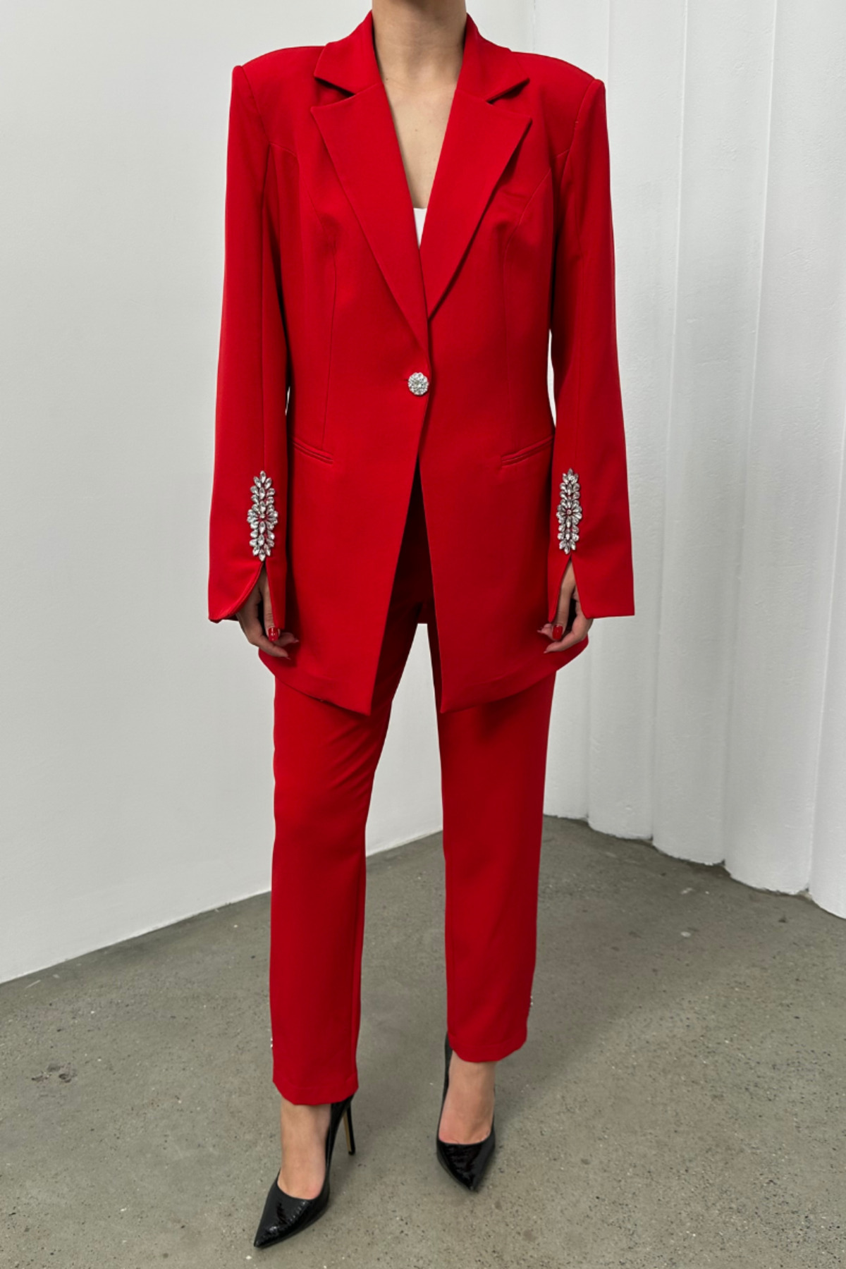 Kadın Ikili Takım Taş Detaylı Boru Paça Blazer Ceket Pantolon Takım Kadın Ikili Takım Taş Detaylı Boru Paça Blazer Ceket Pantolon Takım AC-CPT-04 42