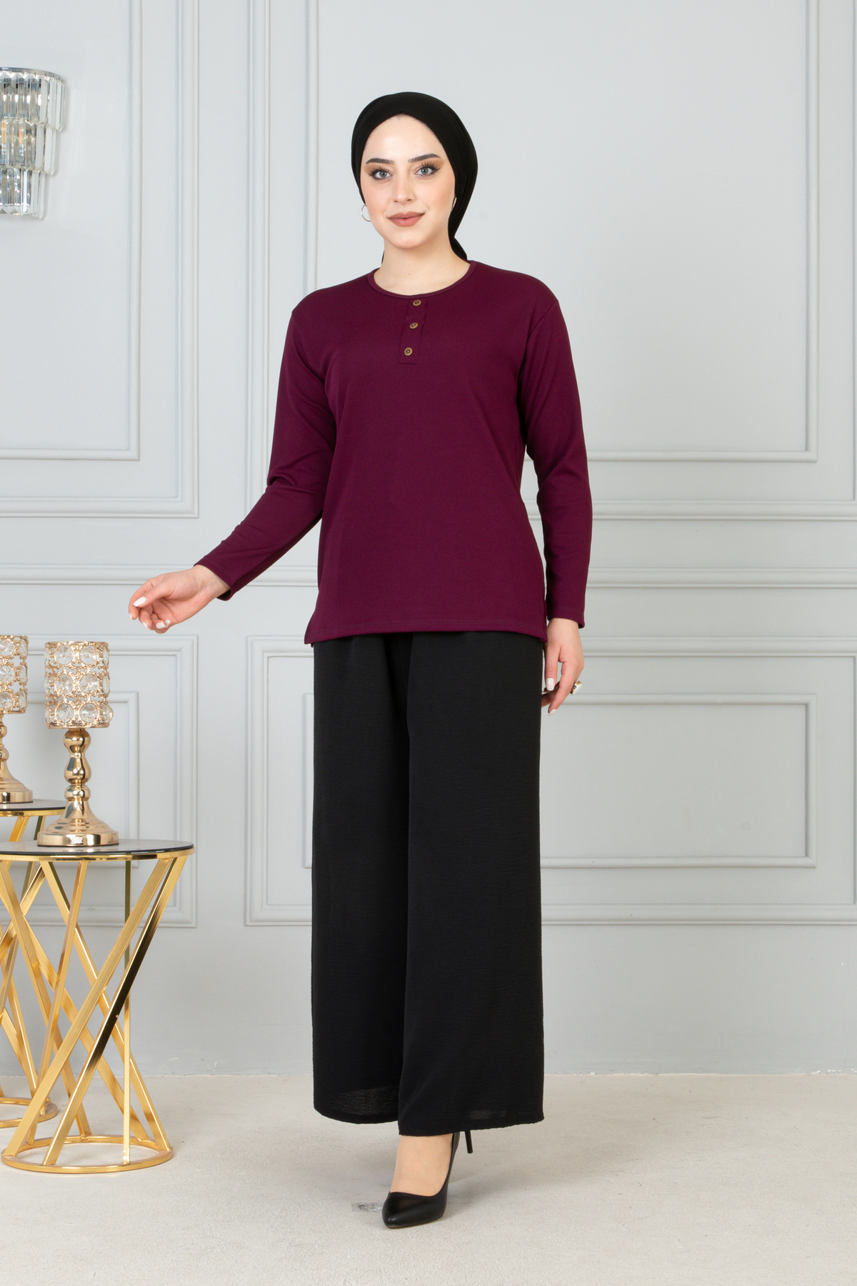 Kadın Anne Rahat Kesim Salaş İnce Fitilli Düğme Detaylı Penye Bluz Kadın Anne Rahat Kesim Salaş İnce Fitilli Düğme Detaylı Penye Bluz ncr1855 3XL