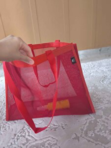 Kadın File Plaj Çantası Kırmızı Renk Yüksek Kaliteli File Kumaş 39x50 Cm Geniş Hacimli Plaj Çantası Kadın File Plaj Çantası Kırmızı Renk Yüksek Kaliteli File Kumaş 39x50 Cm Geniş Hacimli Plaj Çantası FLC-KR-218 تک سایز