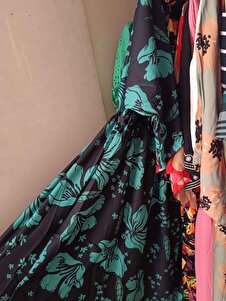 Yeşil Uzun V Yaka Desenli Kadın Elbise MG2076 Yeşil Uzun V Yaka Desenli Kadın Elbise MG2076 XL