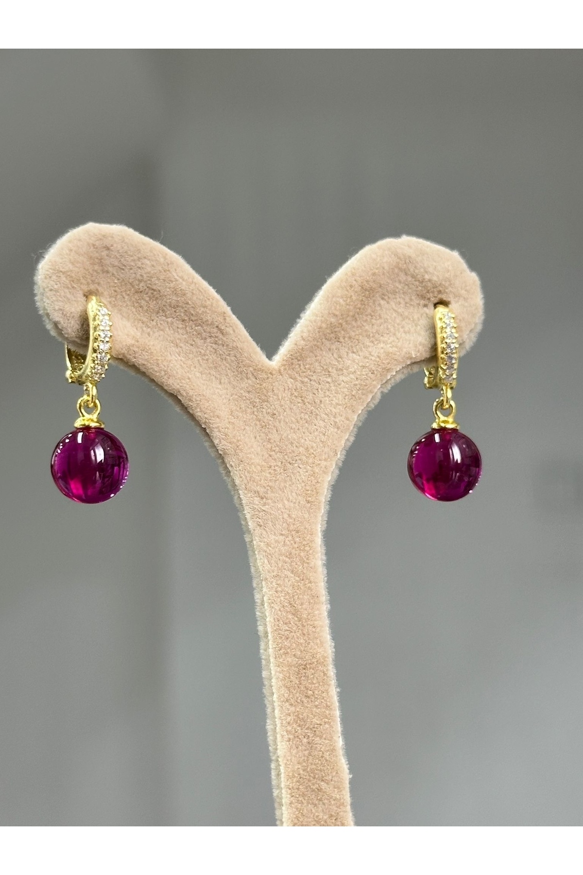 Yakut Taşlı Altın Kaplama Gümüş Küpe Yakut Taşlı Altın Kaplama Gümüş Küpe YKT44 تک سایز